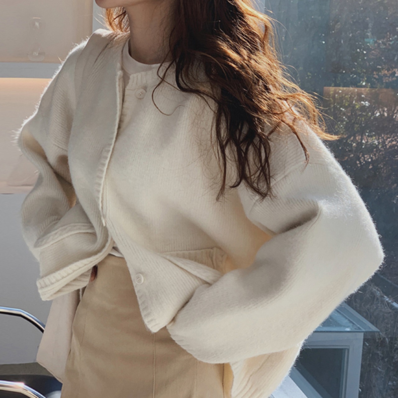 長袖 ニット カーディガン ジャケット オールマッチ シングル ブレスト 韓 国ファッション レディース 可愛い シンプル 無地 ロング丈 おしゃれ