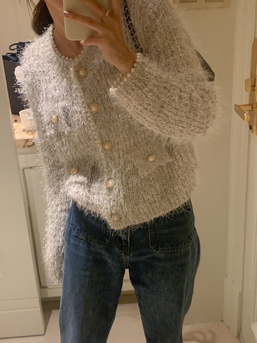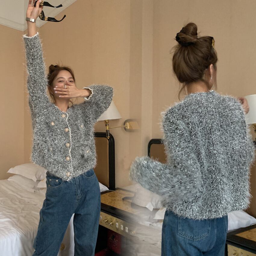 ネック ビーズ ニット カーディガン セーター コート 長袖 韓国ファッション 大人カジュアル 可愛い