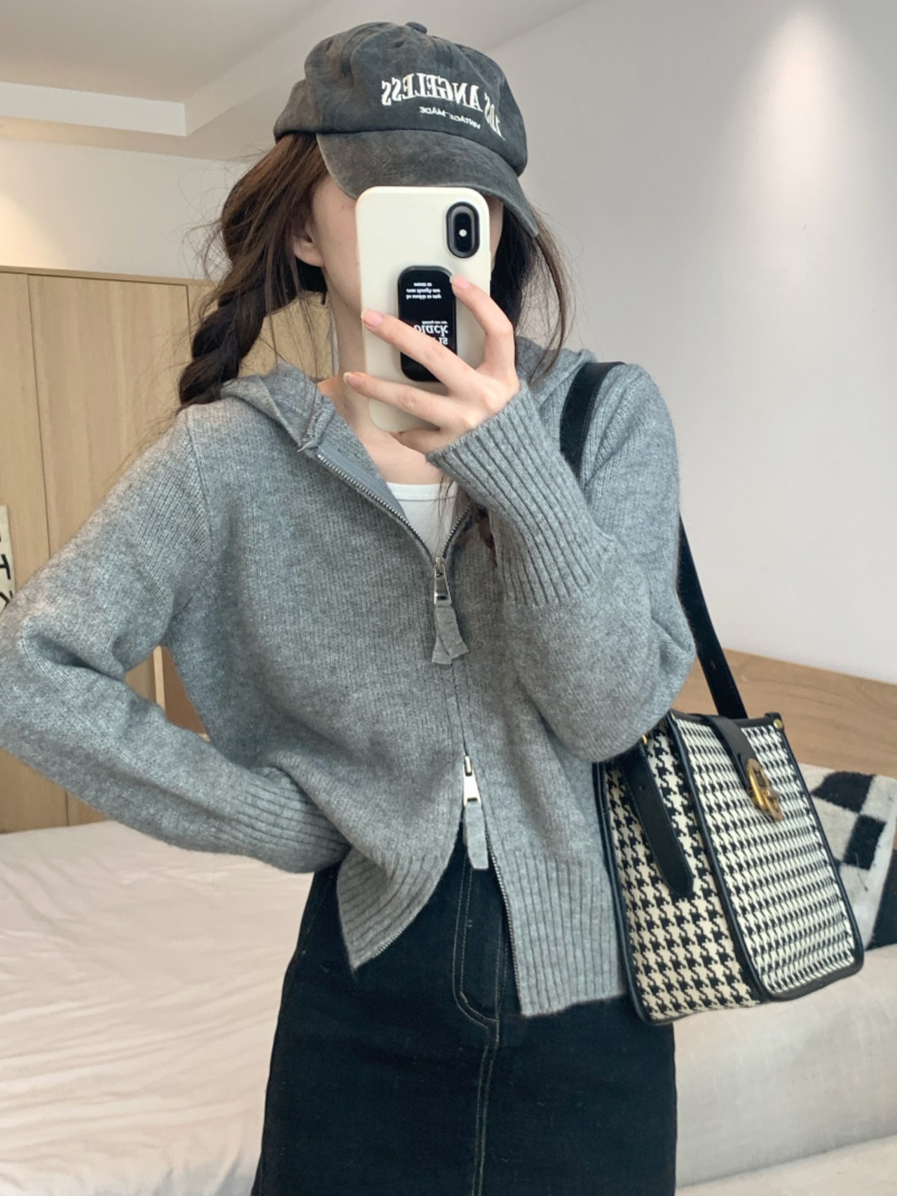ニットパーカー ジップパーカー パーカー フロントジップ 長袖 シンプル カジュアル 韓国ファッション 5color