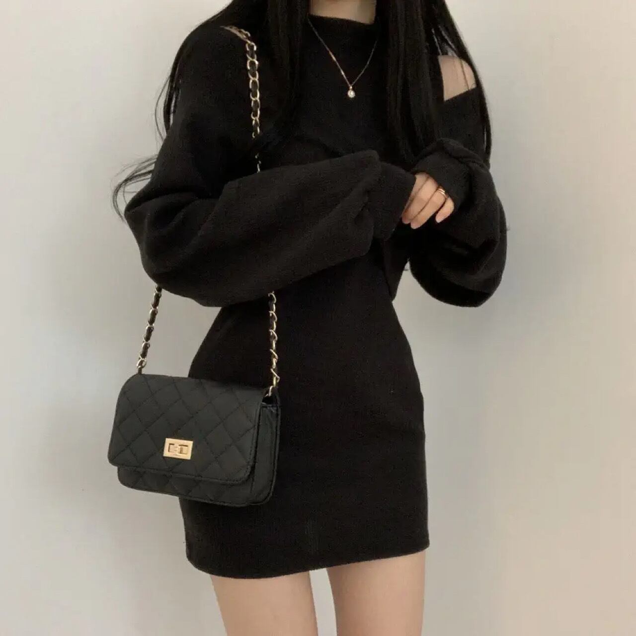 ニット トップス スカート レディース 可愛い セクシー 春ファッション 春コーデ 大人可愛い 大人カジュアル シンプル ワンピース 長袖 ミニ丈
