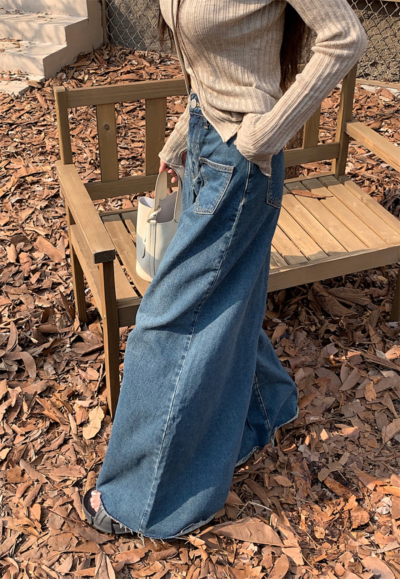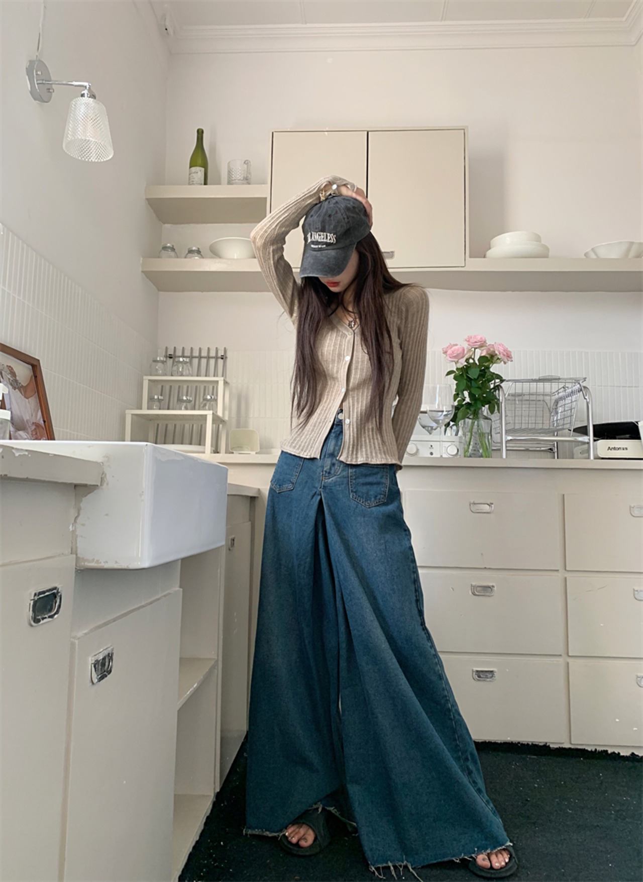 ワイドパンツ ジーンズ パンツ デニムパンツ ボトム 着回し カジュアル ガーリー 韓国ファッション S-L