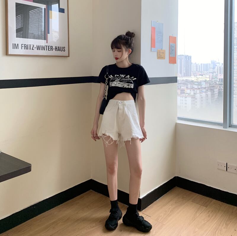 デニム ショート パンツ レディース ホール ワイドレッグパンツ インスーパーファイヤー ハイウエス大人可愛い 大人カジュアル シンプル 春ファッション 春コーデ