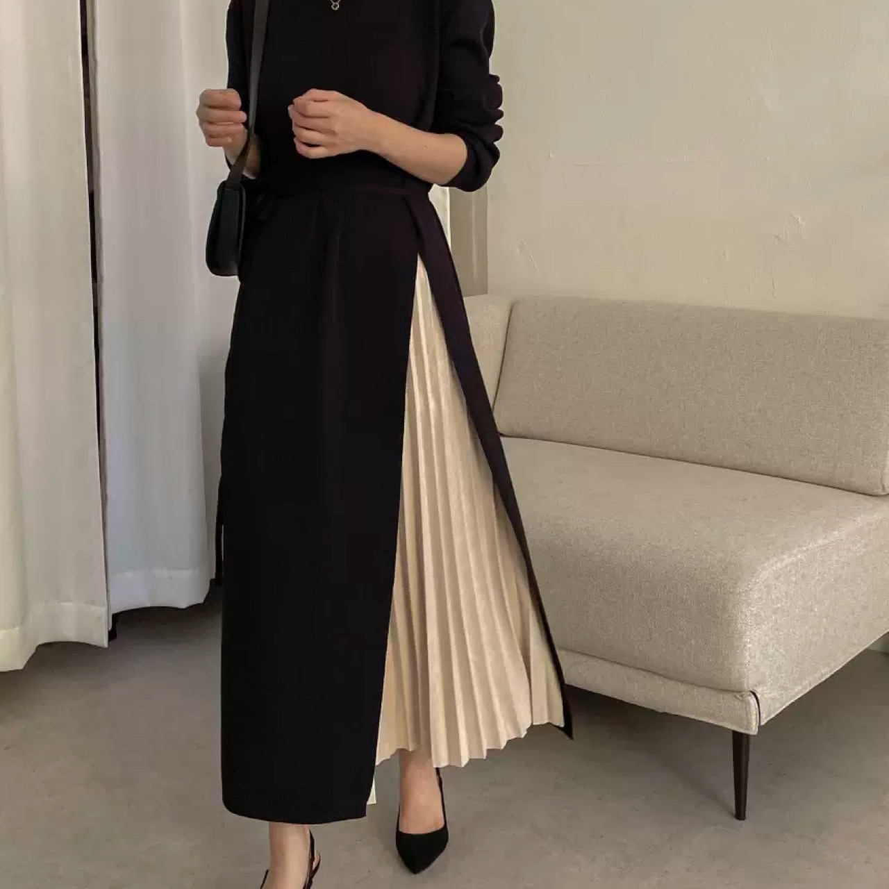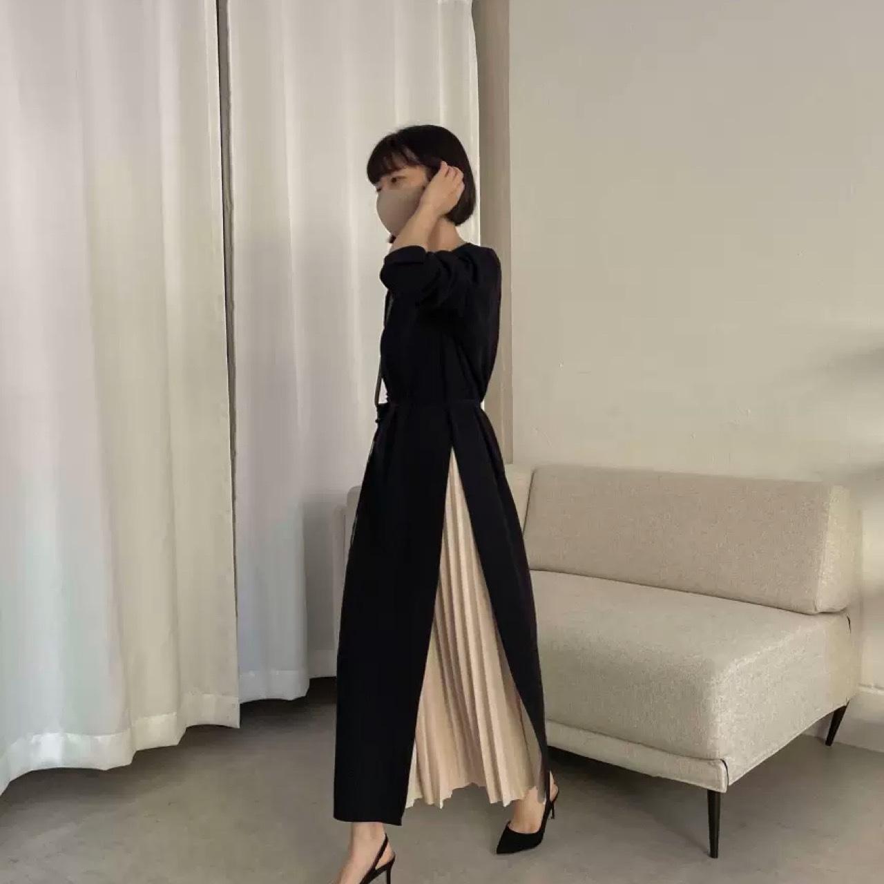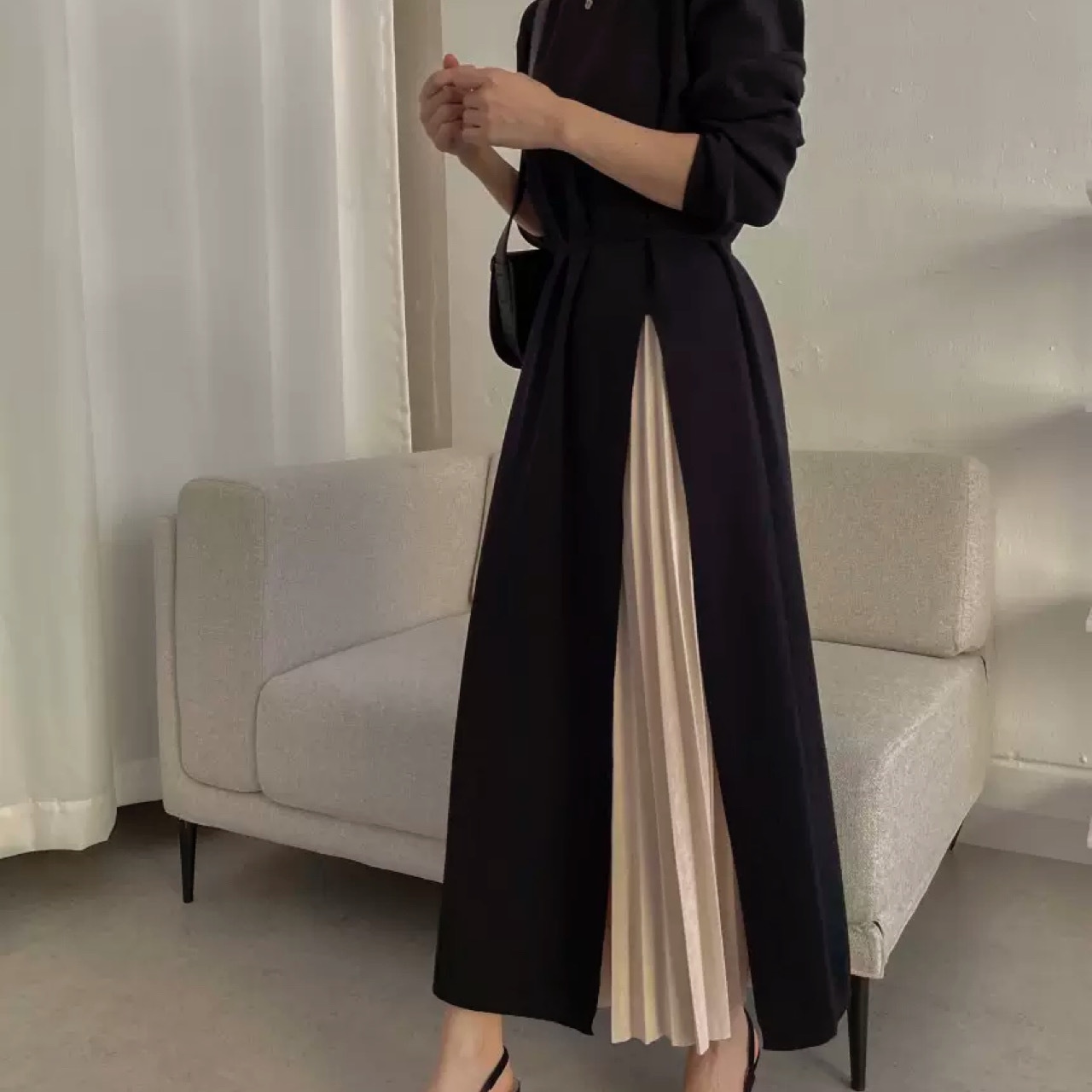 ワンピース 大人っぽい 大人カジュアル 韓国ファッション レディース ロング ロングワンピース 長袖 春ファッション春コーデ 無地 シンプル エレガント