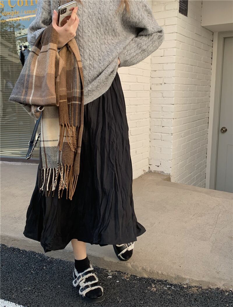 シック スカート シンプル レトロ ハイウエスト プリーツ A ライン スカート アプリコット ミドル丈スカート きれいめ 大人カジュアル