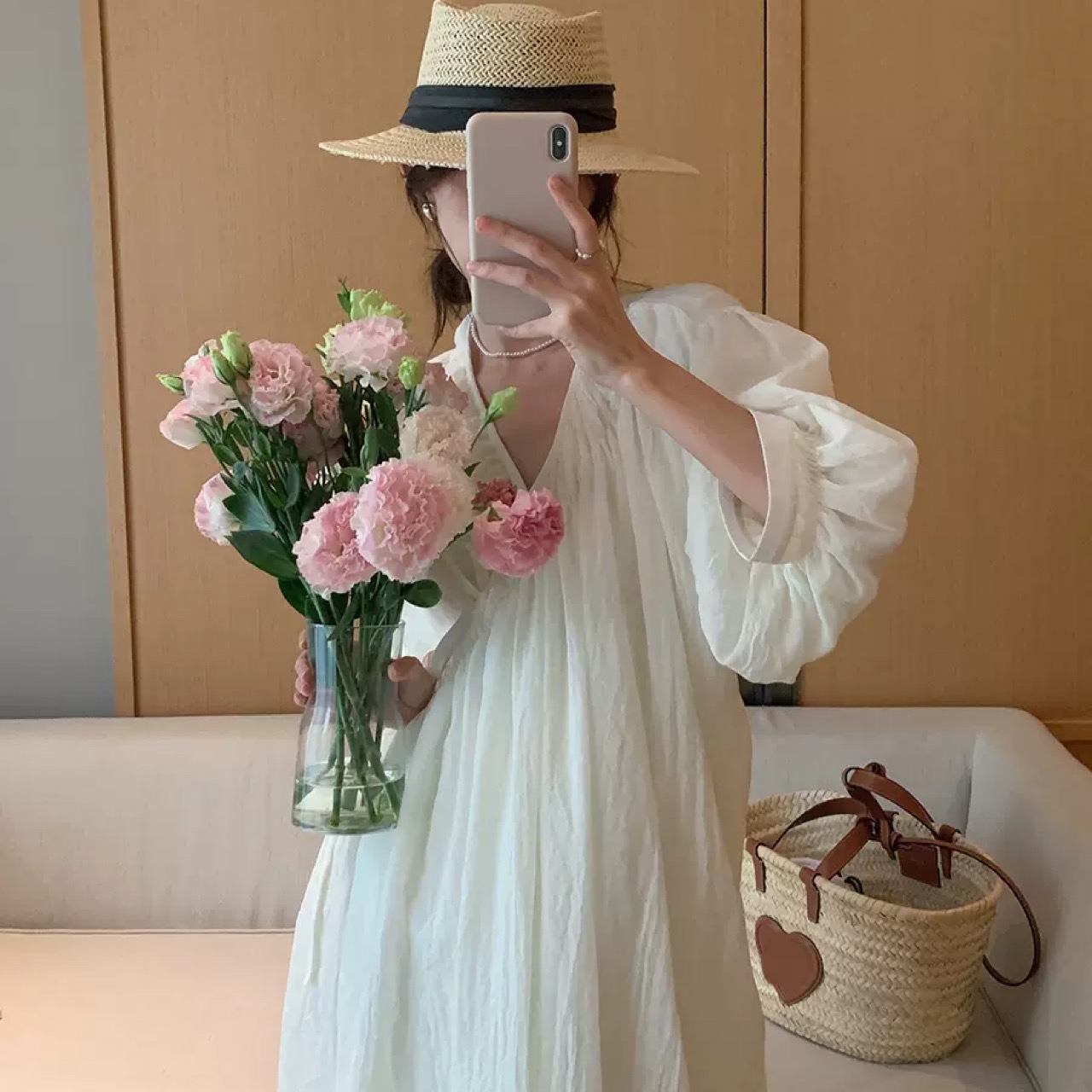 エレガントでフェミニンな印象のワンピース。