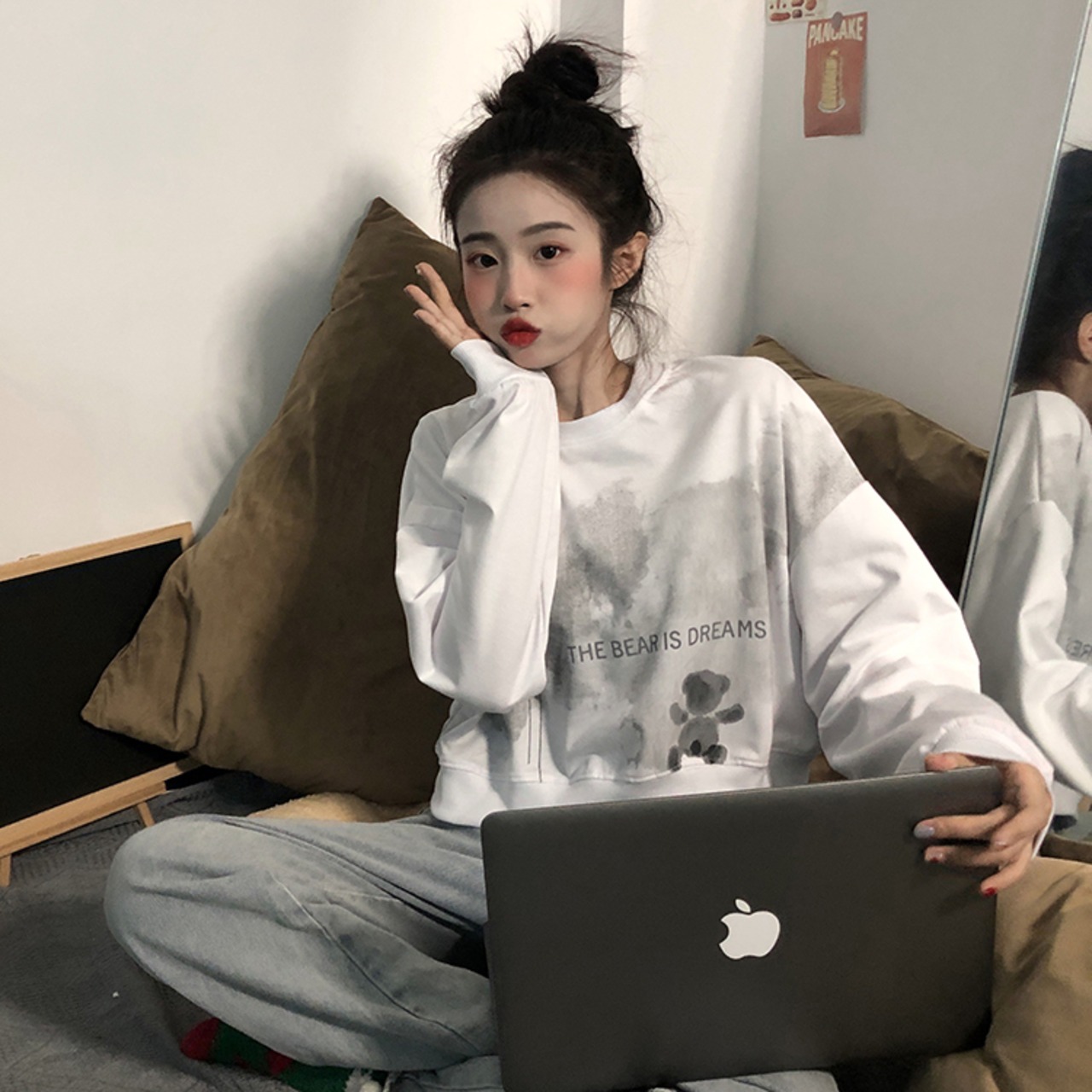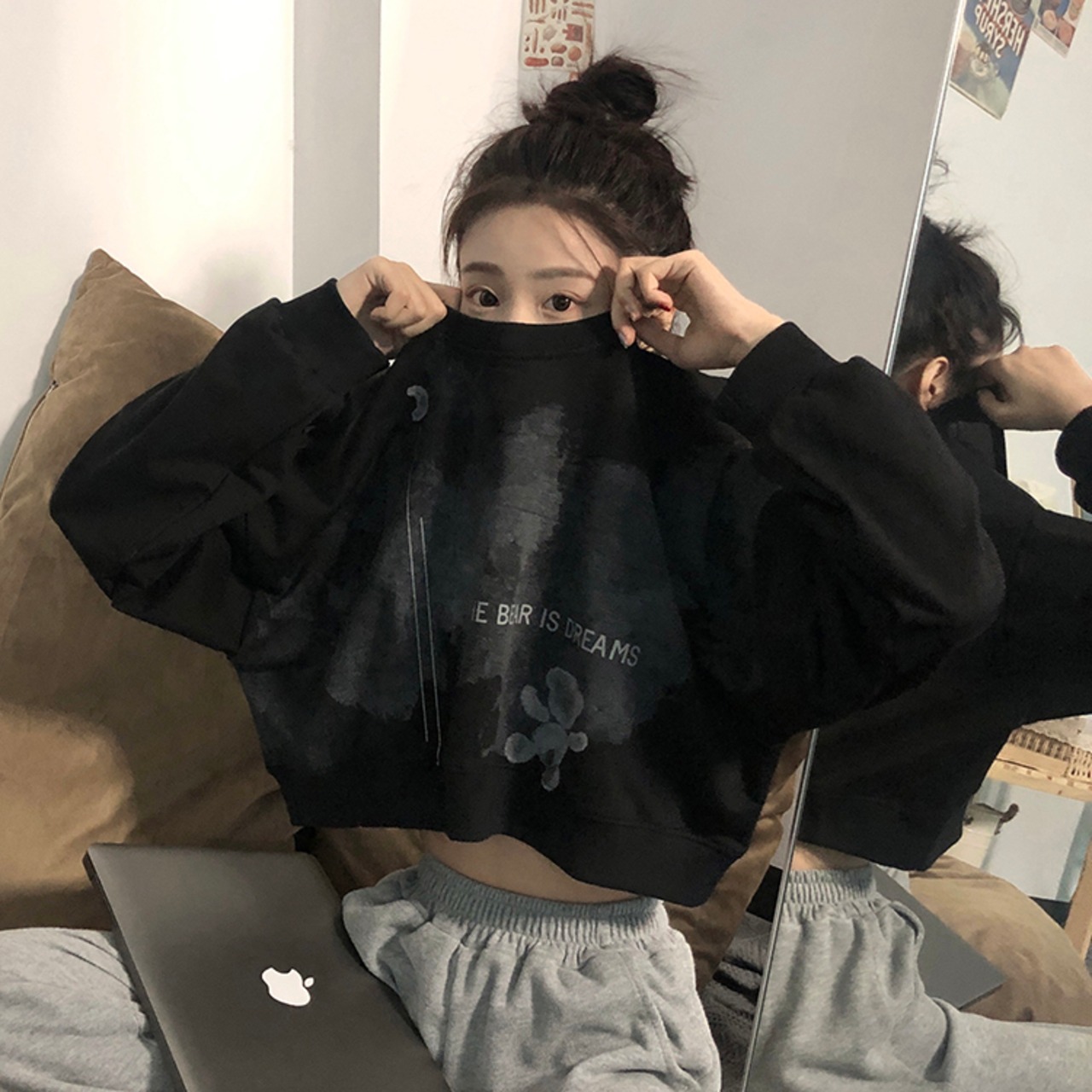 スタイル ショート 長袖 セーター 大人カジュアル 大人可愛い 大人セクシー 無地ラウンドネックプルオーバー