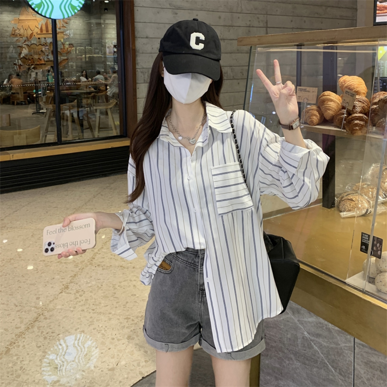 ストライプシャツ トップス ルーズ 長袖 BF風 カジュアル レトロ モード 韓国ファッション 3color