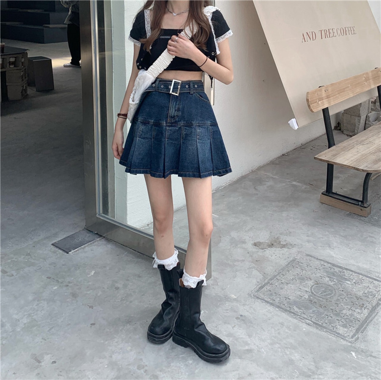 デニムスカート レディース 可愛い 大人可愛い 大人カジュアル アメリカン レトロ ハイウエスト ニッチ Aライン プリーツスカート ショートスカート スカート