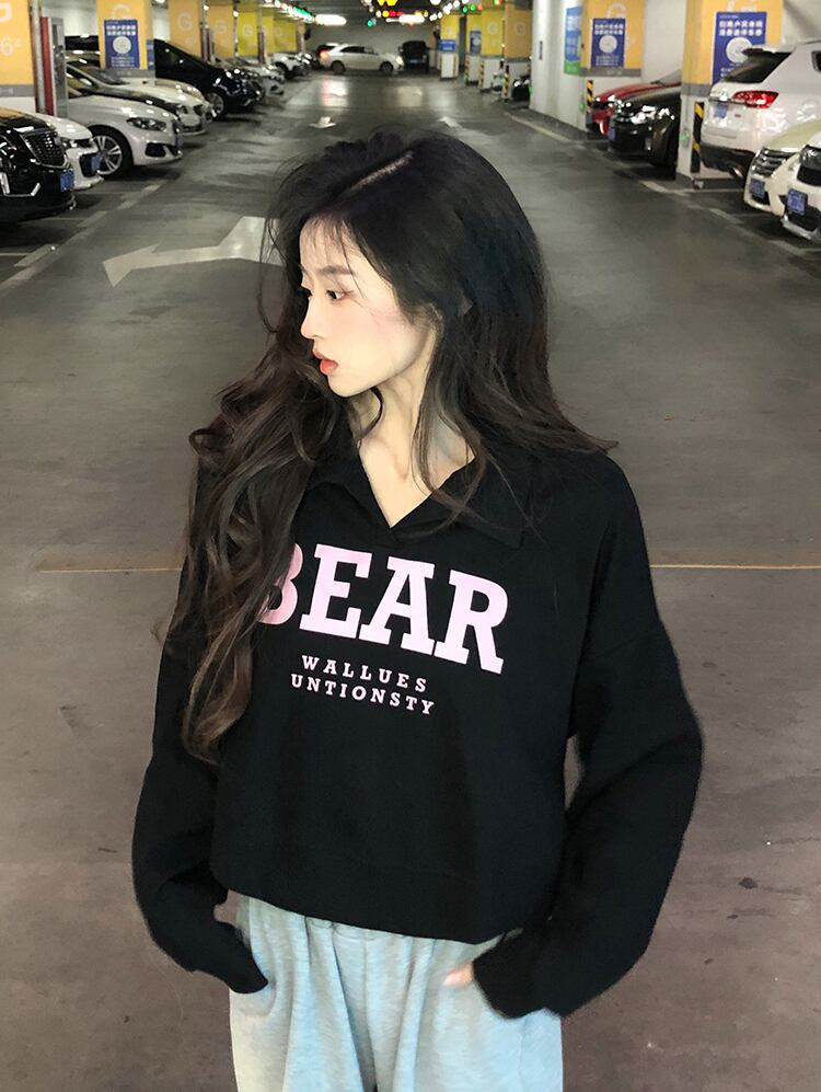 ポロトップス トップス ロゴ 長袖 BF風 シンプル メンズライク カジュアル レトロ 韓国ファッション 2color