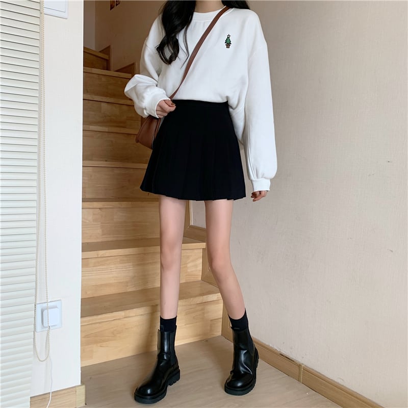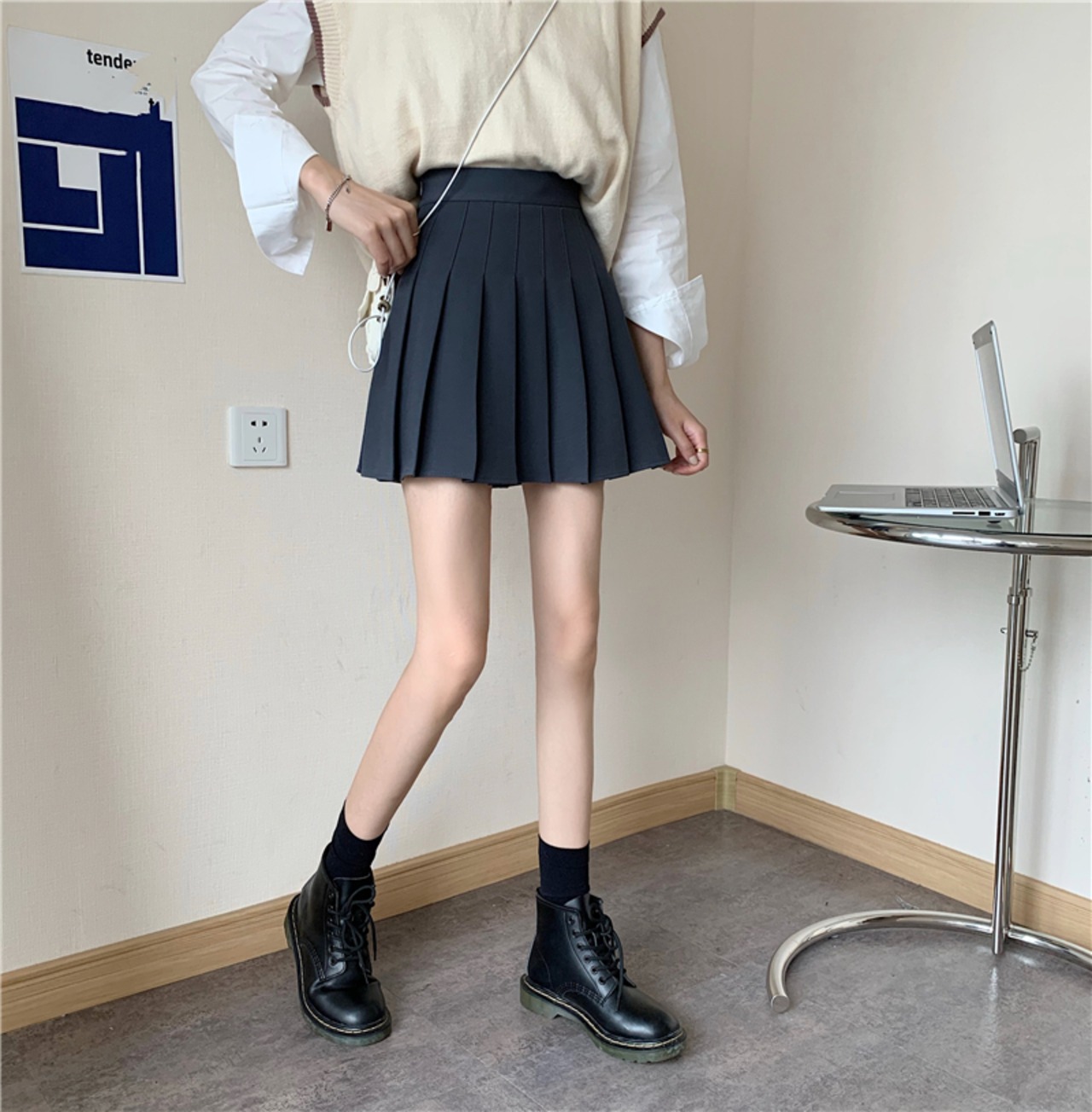 プリーツスカート ミニスカート 無地 シンプル レトロ ガーリー 韓国ファッション 3color S-L