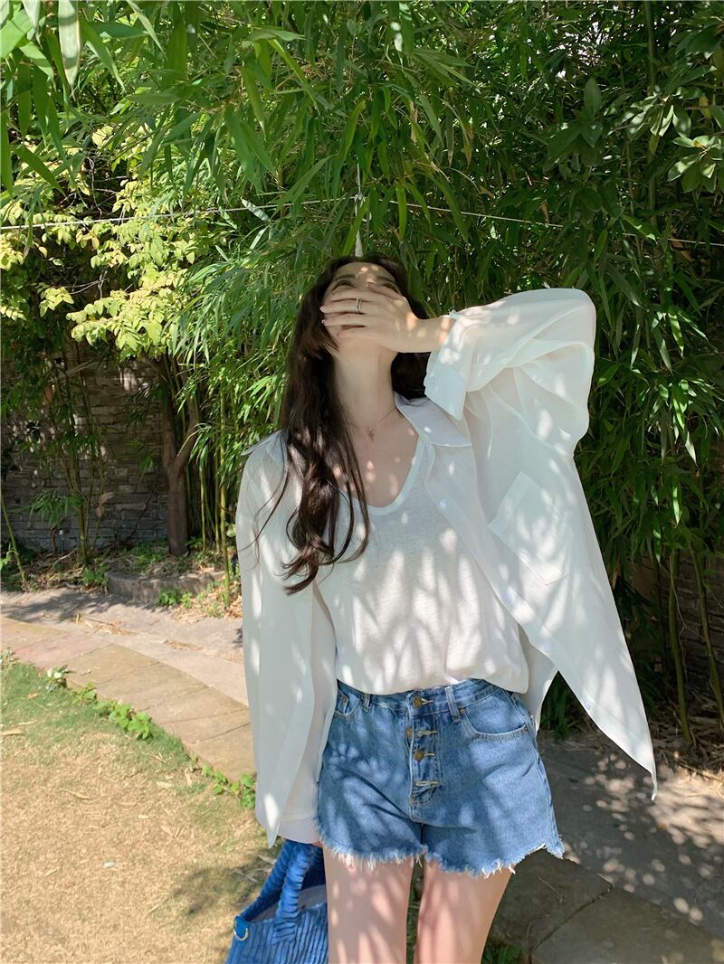 セットアップ ツーピース 長袖シャツ 2点セット キャミソール 薄手 シンプル 韓国ファッション 4color
