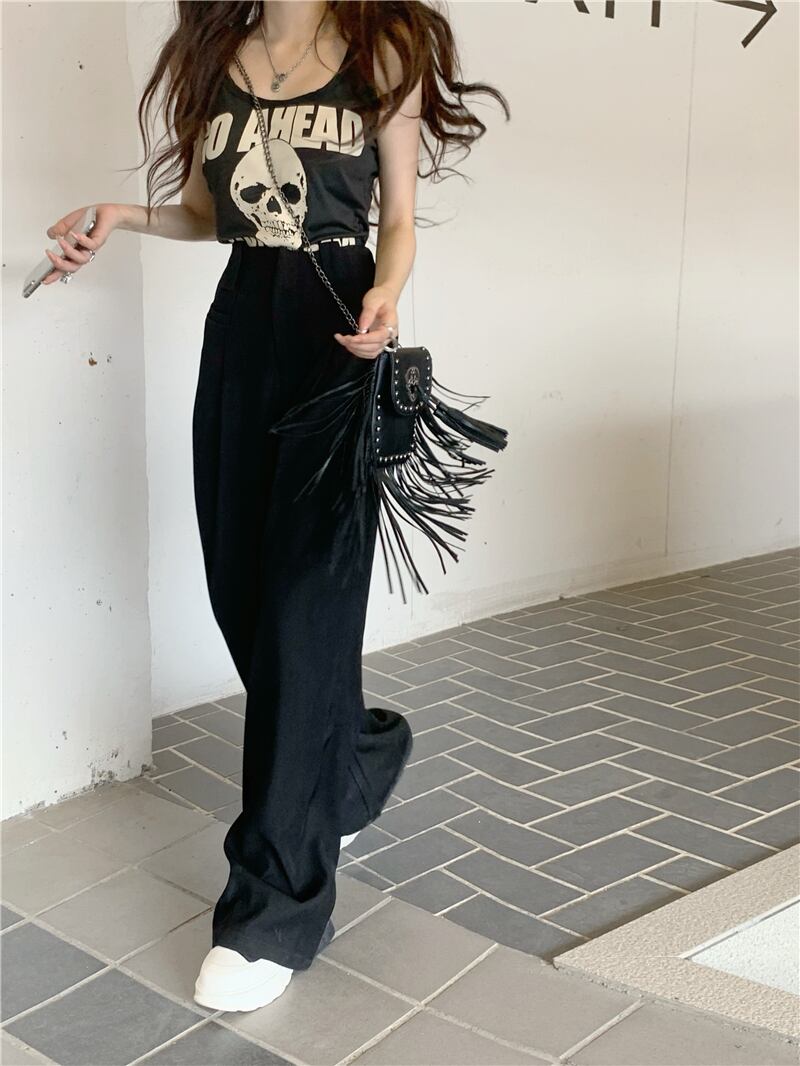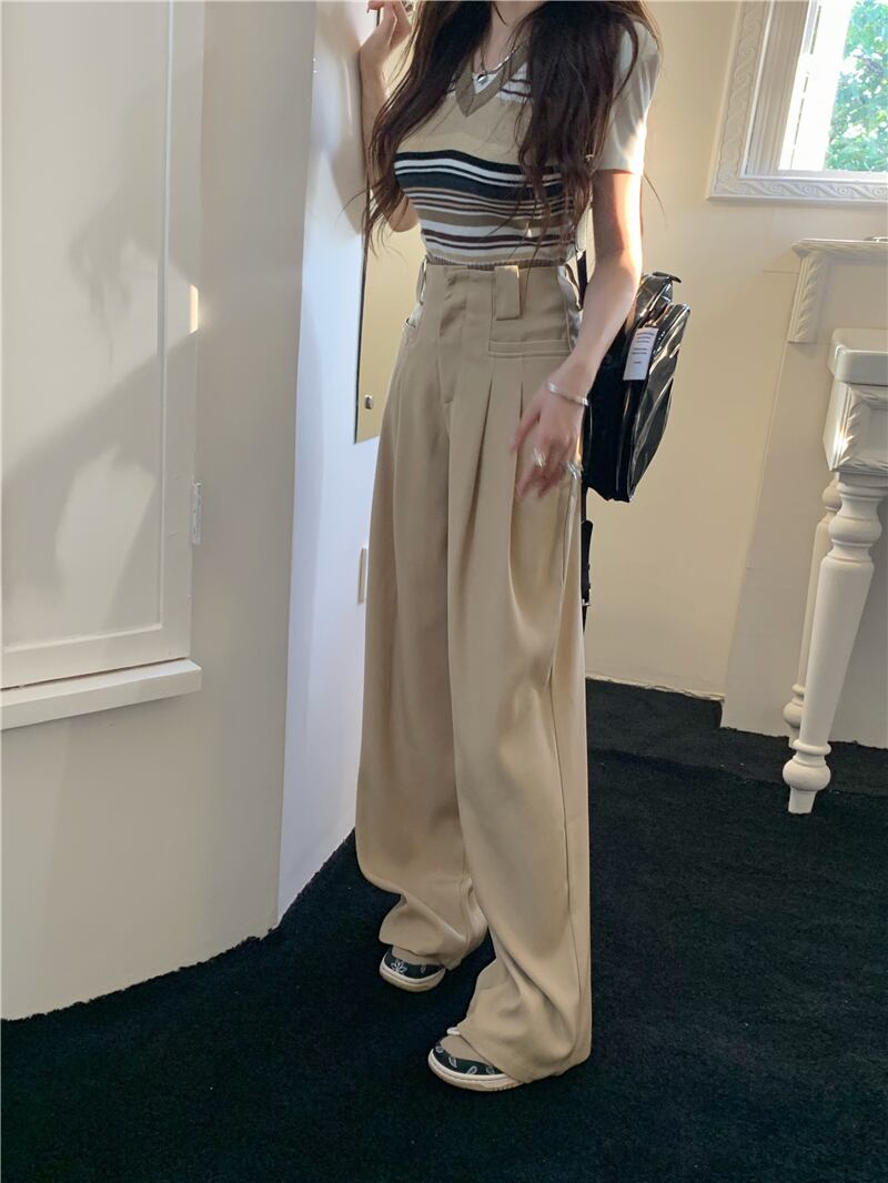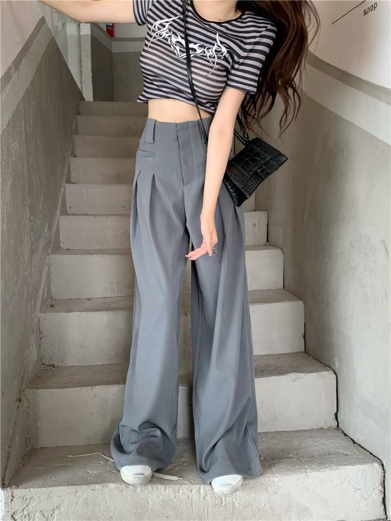 ハイウエスト モップドレープ カジュアル パンツ レディース 無地 ハイウエスト ワイドレッグ パンツストレート スーツパンツ パンツ