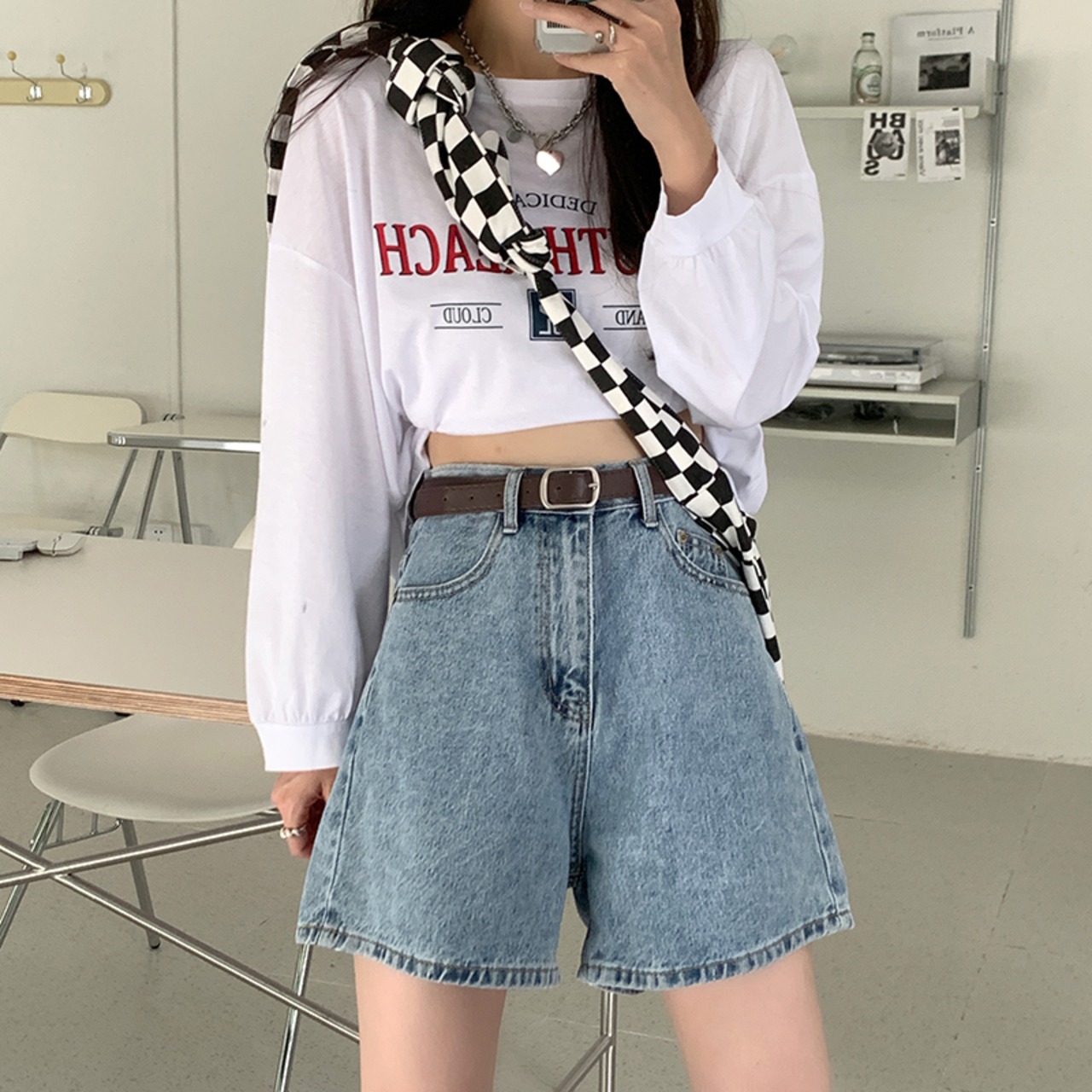 ショートパンツ デニムパンツ ボトム 着回し シンプル カジュアル 韓国ファッション 2color XS-XL