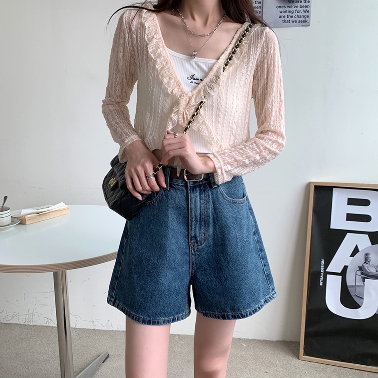 どんなトップスにも合わせやすいショートデニムパンツ。