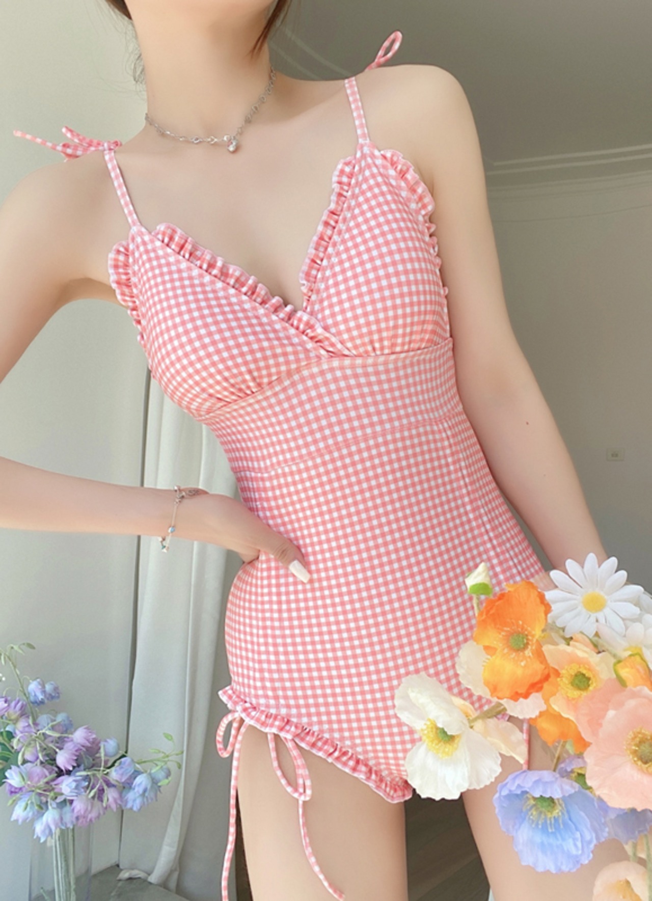 格子縞 水着 温泉 レトロ ワンピース レディース 海 泳ぎ 海水浴 フランス 水着カバーベリー 夏 可愛い ビキニ