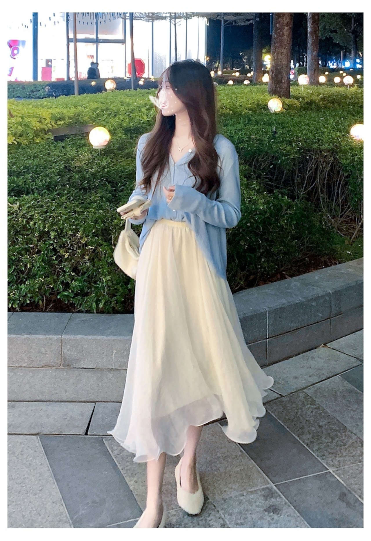 スカートシック 夏 白ガーゼ スカート Aライン メッシュ スカート 大人カジュアル 可愛い