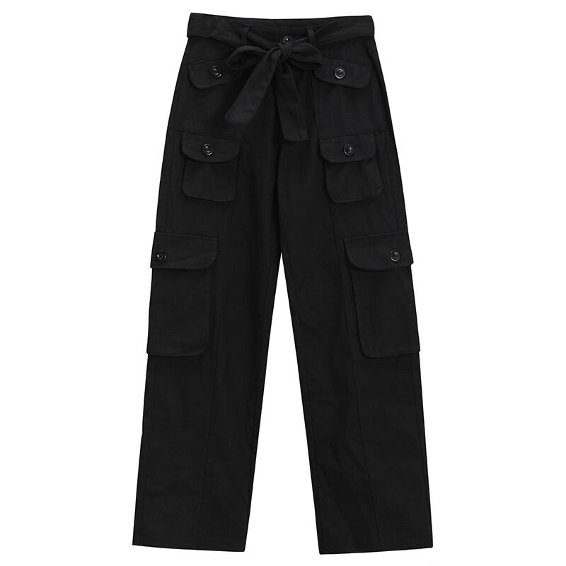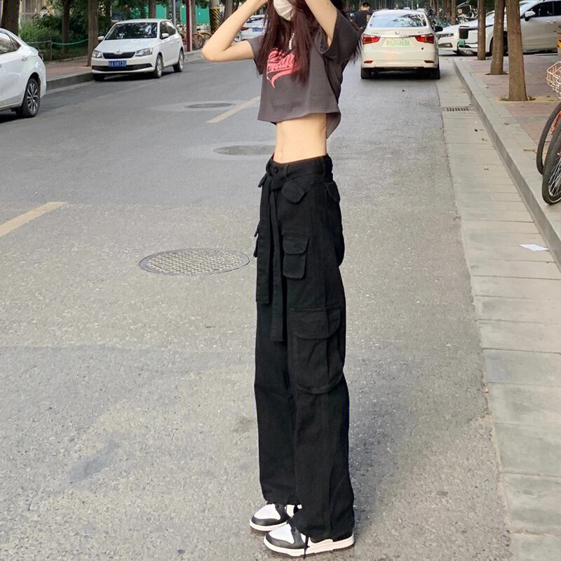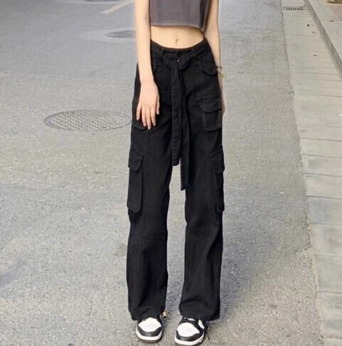 アメリカ レトロ 黒 オーバーオール ハイウエス トホットガール ワイドレッグカジュアル ロングパンツハイストリート 大人カジュアル