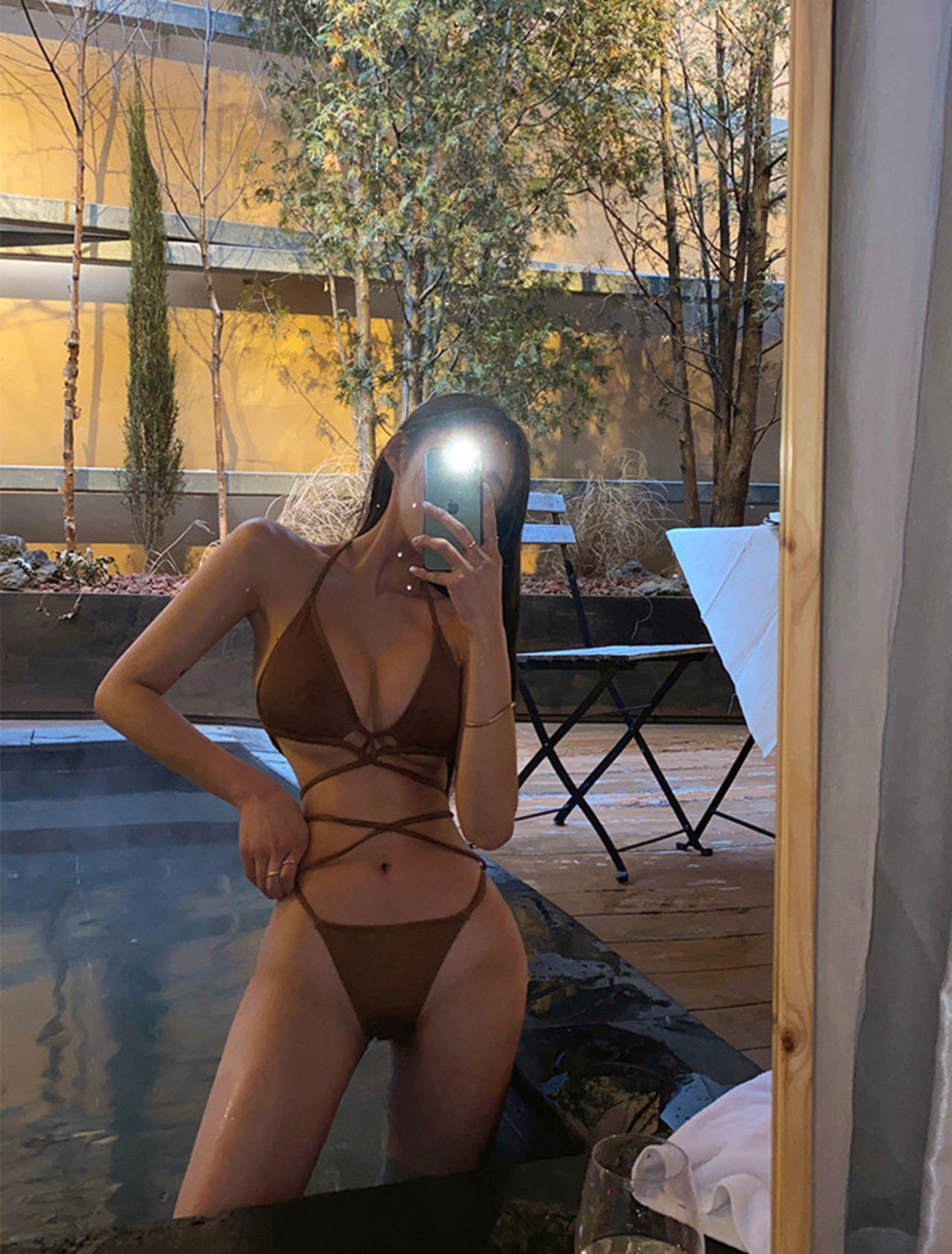 水着 スイムウェア ビキニ クロス レースアップ 海 プール ビーチ 体型カバー 韓国ファッション セクシー 2color