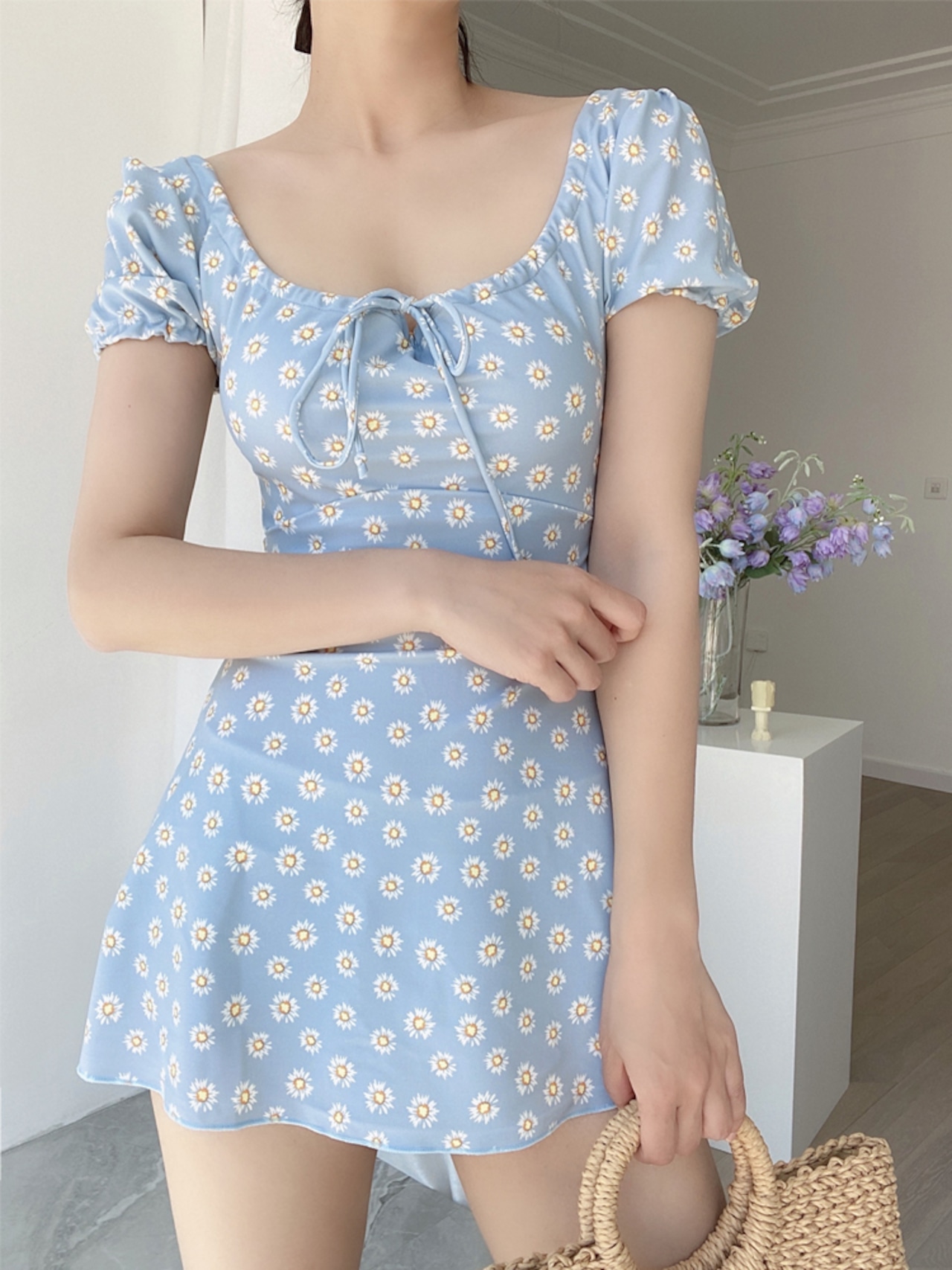 水着 スイムウェア ワンピース水着 ビーチ 体型カバー フラワー 花柄 韓国ファッション ガーリー 大人可愛い