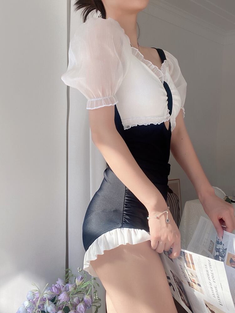 水着 スイムウェア ワンピース水着 ビーチ 体型カバー シアーリボン 韓国ファッション ガーリー 大人可愛い