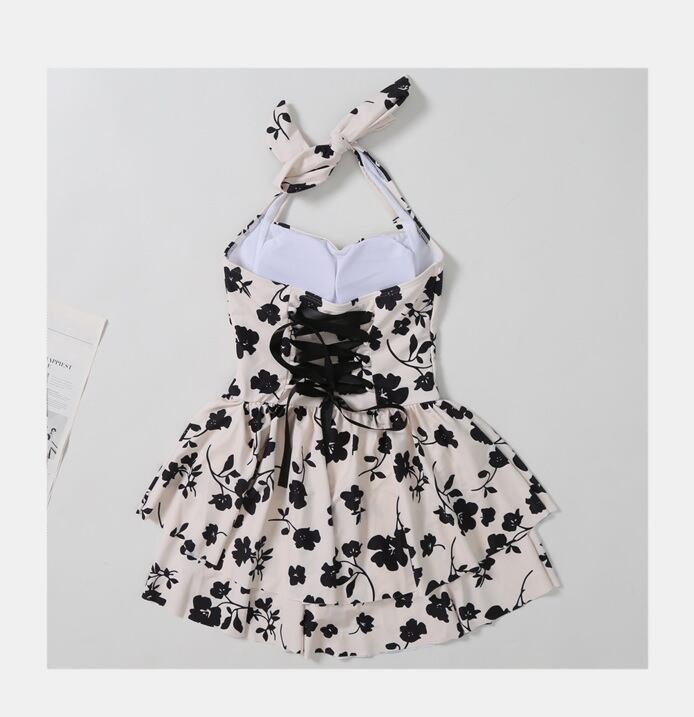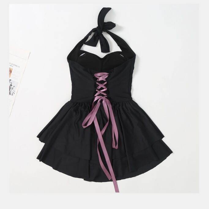 水着 スイムウェア ワンピース水着 ビーチ 体型カバー 韓国ファッション レースアップ ガーリー 大人可愛い 2color