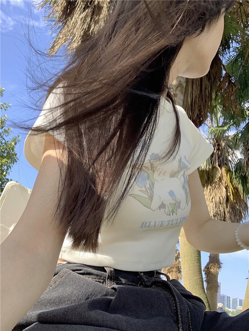 ショートTシャツ レディース 夏デザインセンス フロントショルダー 漫画 プリントスリムフィット 半袖 ボトムイントップイン 可愛い カジュアル