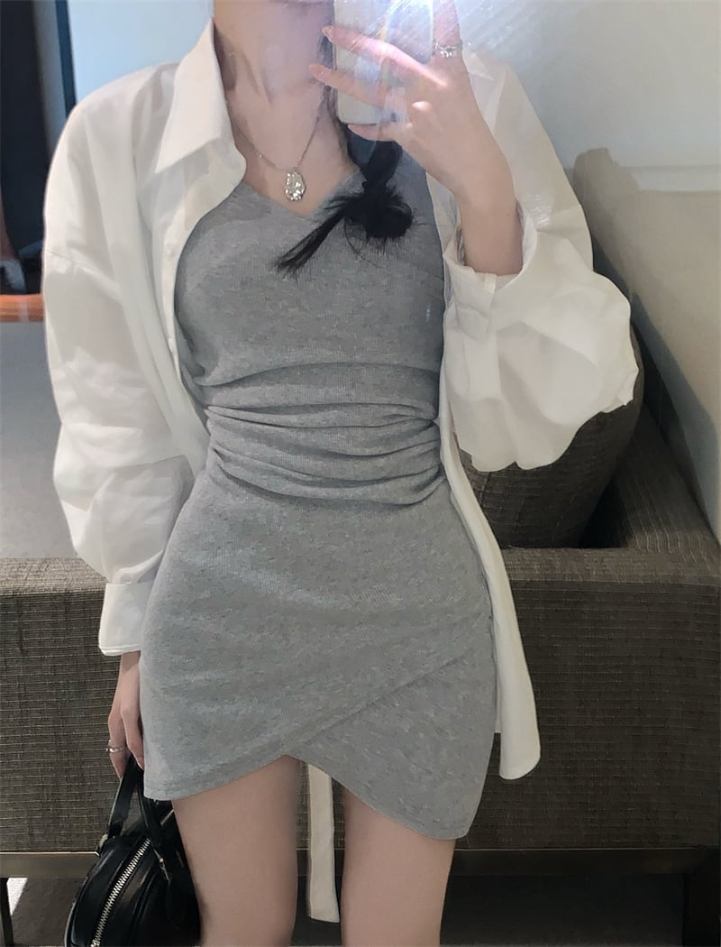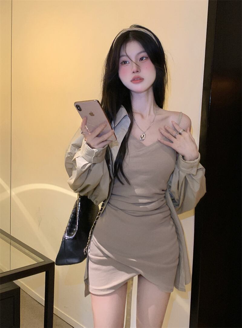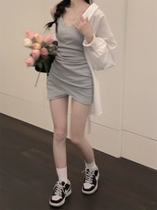 バッグヒップサスペンダースカート夏 ウエスト薄いセクシー レイヤードドレス シャツ レディース 大人カジュアル 大人可愛い フェミニン セットアップ 大人っぽい 可愛い