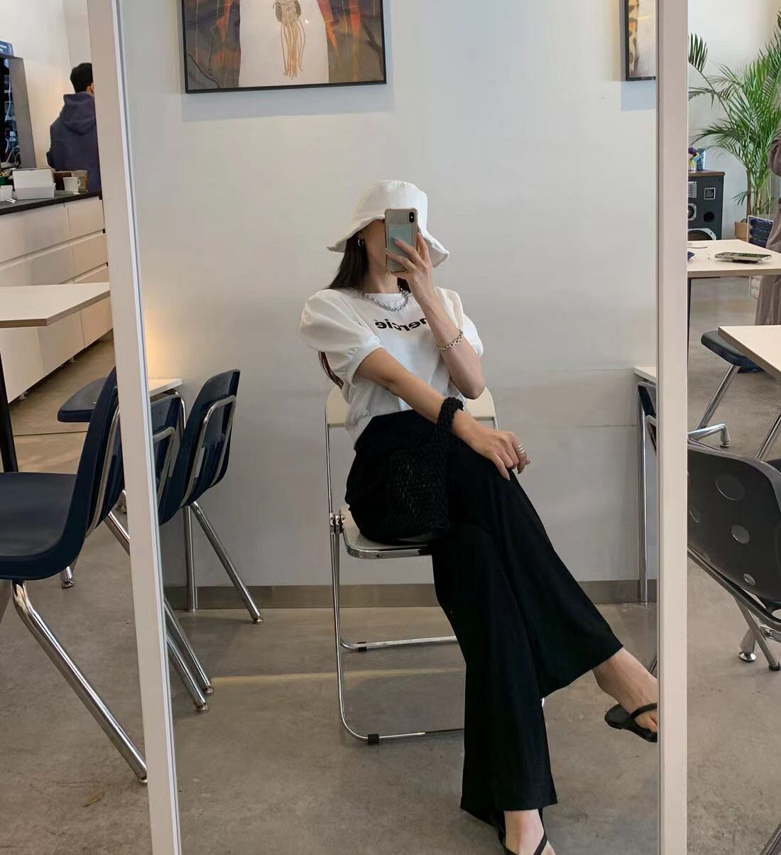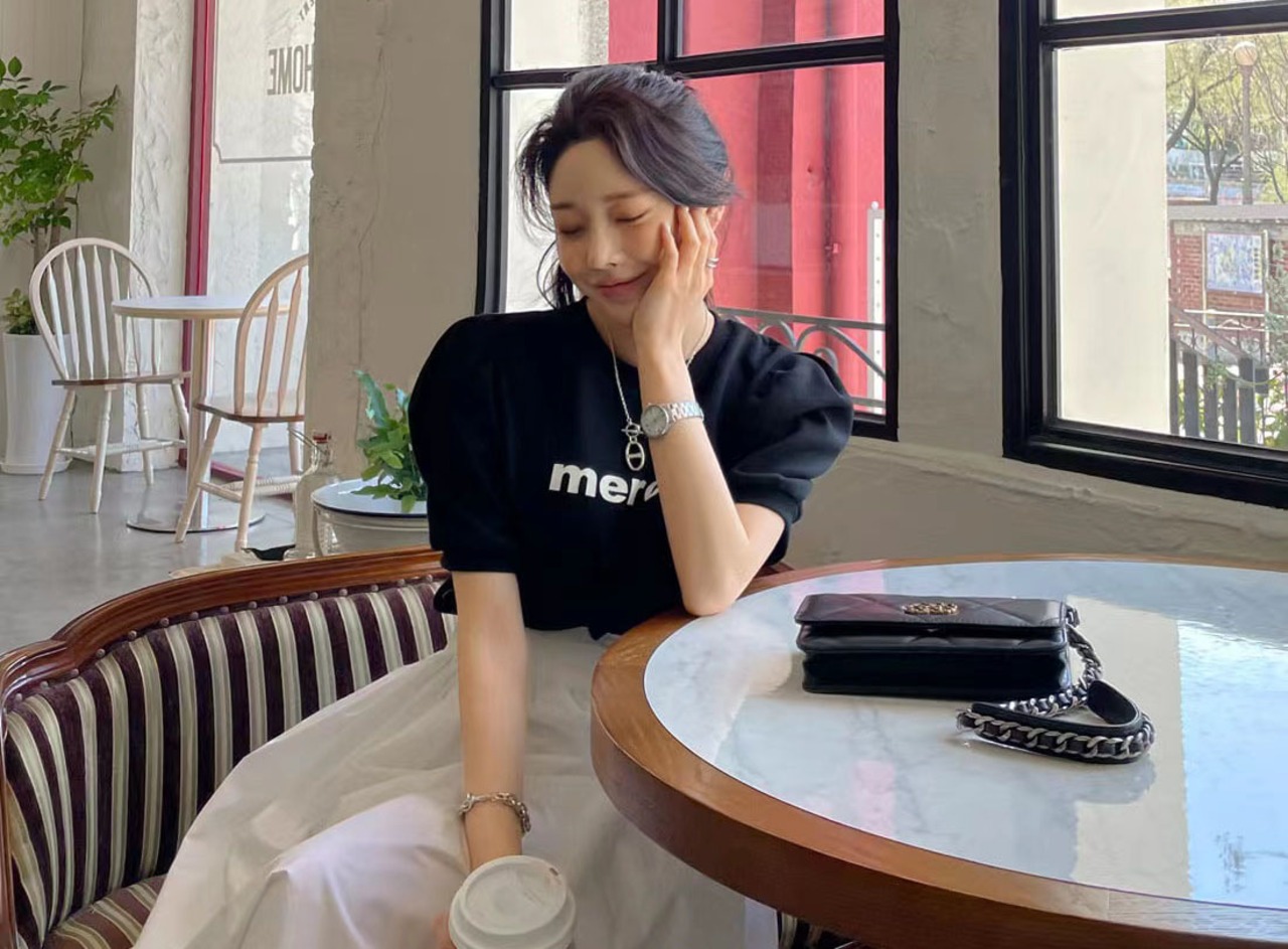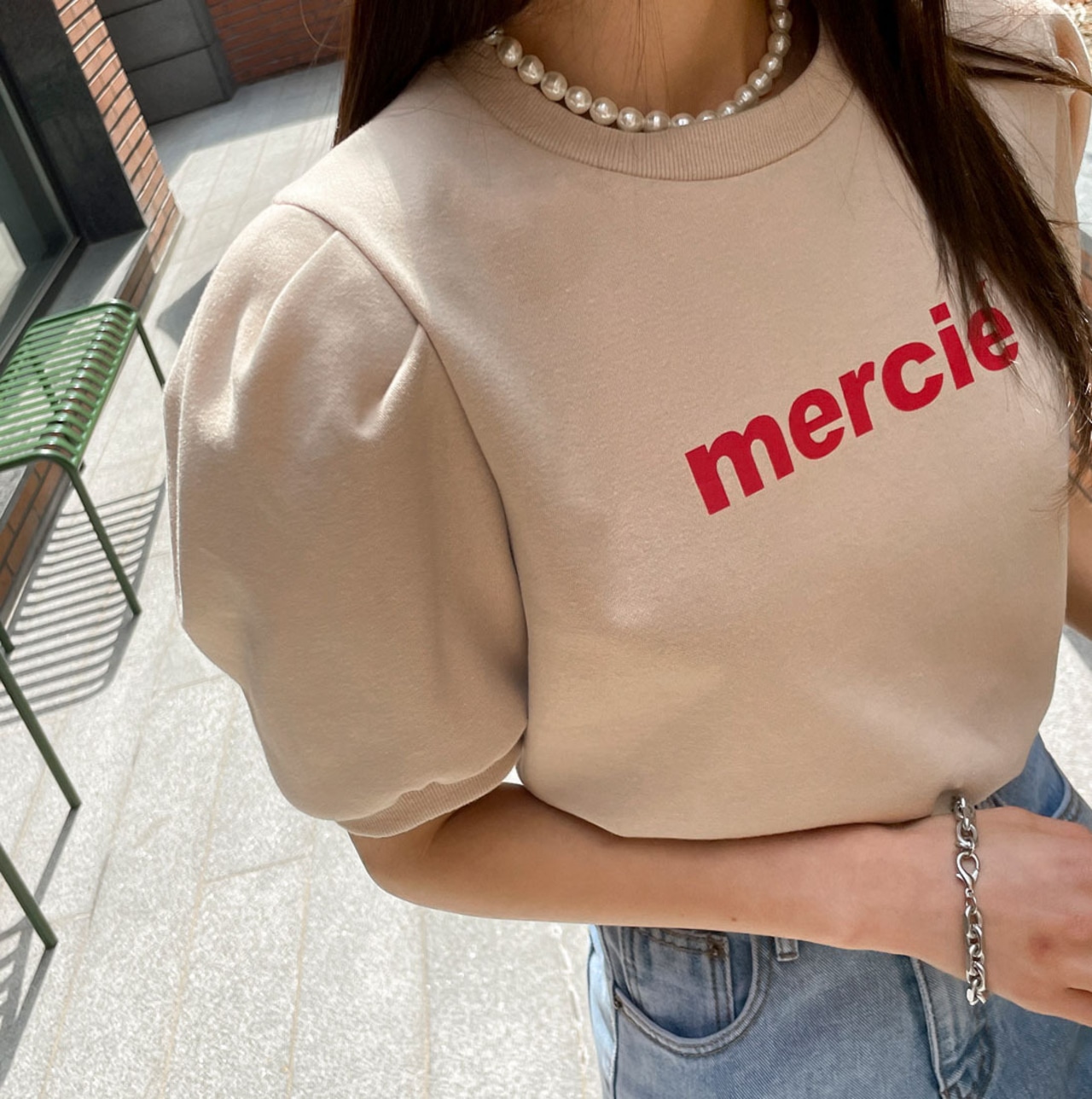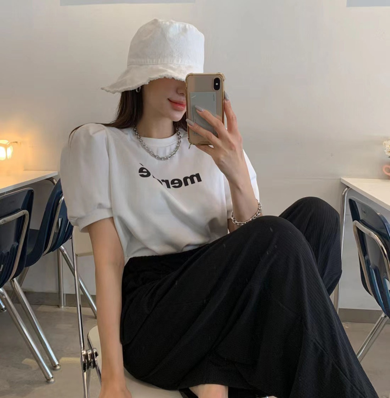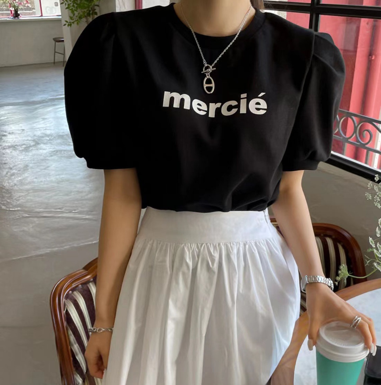 ロゴデザイン Tシャツ シンプル ラウンドネック レタープリントヒットカラー ルーズワイルド パフスリーブプル オーバー Tシャツ 韓国ファッション レディース カジュアル 大人 可愛い