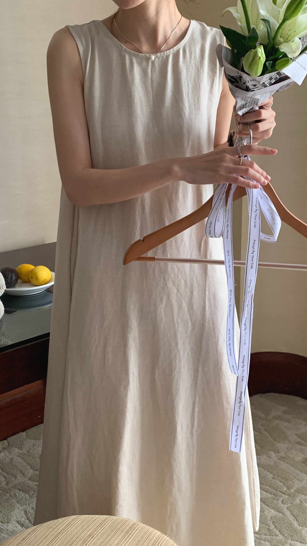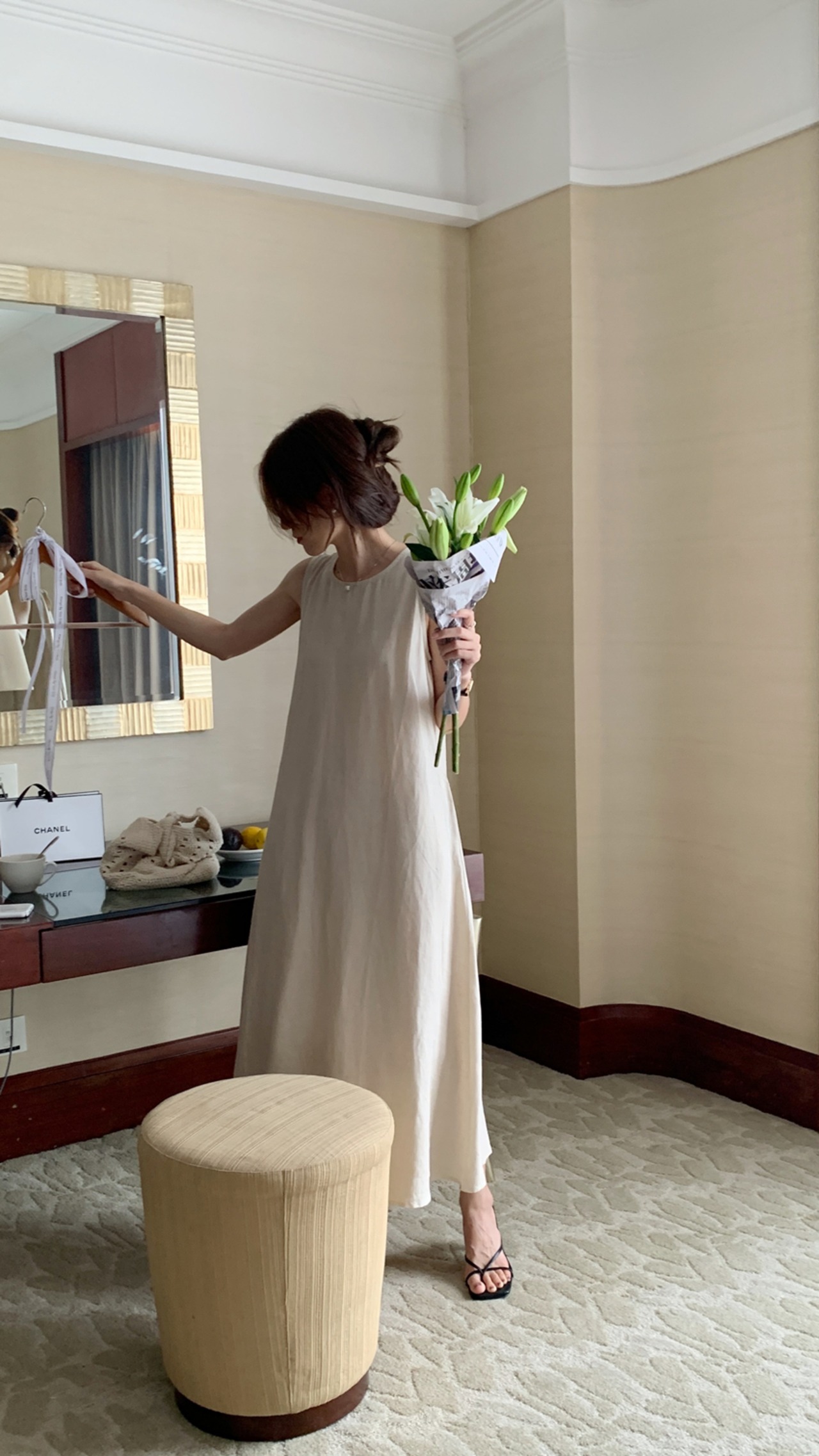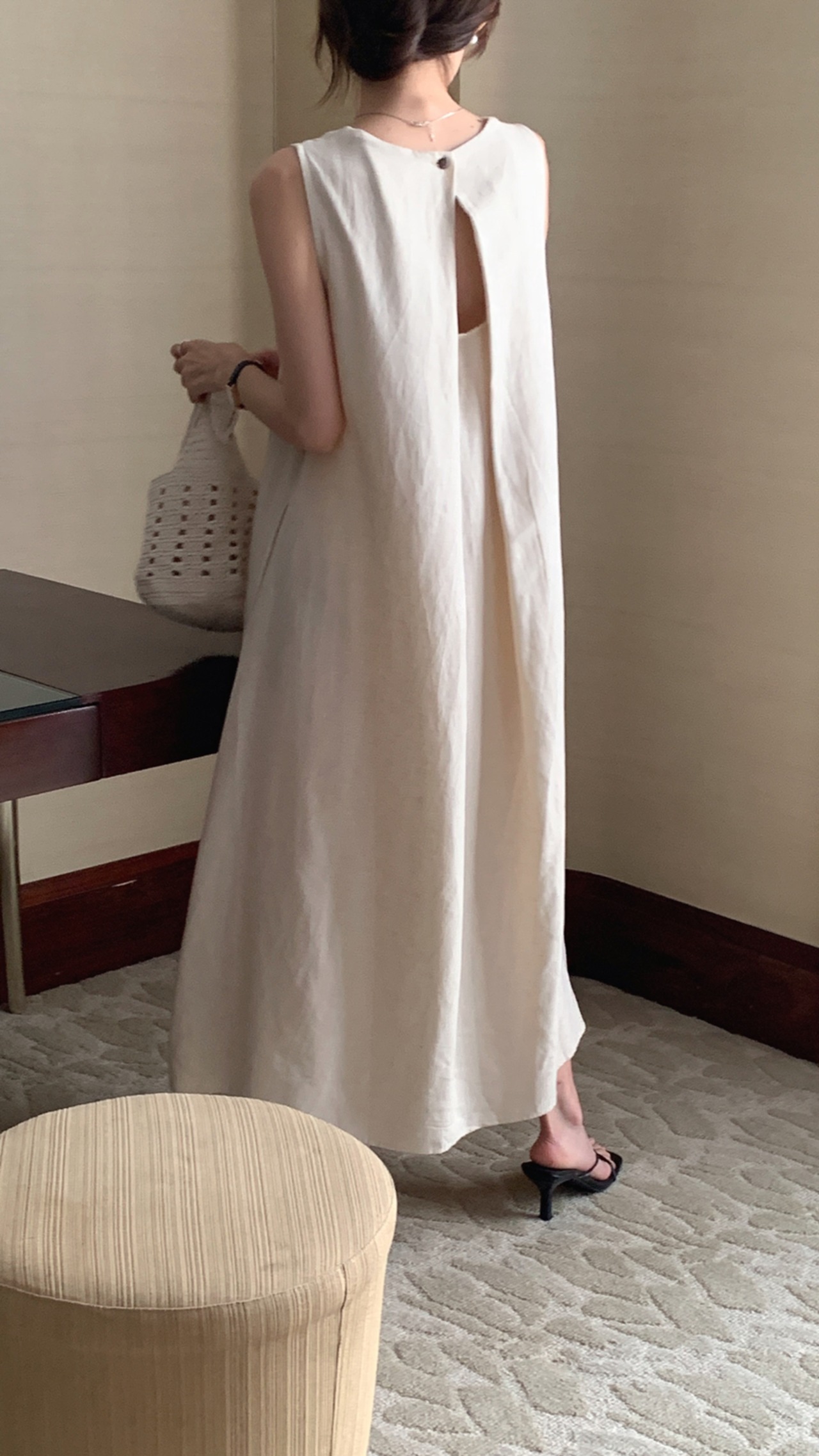ロングワンピース シック 夏 シンプル ラウンドネック ボタン韓国ファッション バックレス ノースリーブベスト ドレスロングスカート レディース カジュアル 大人 可愛い