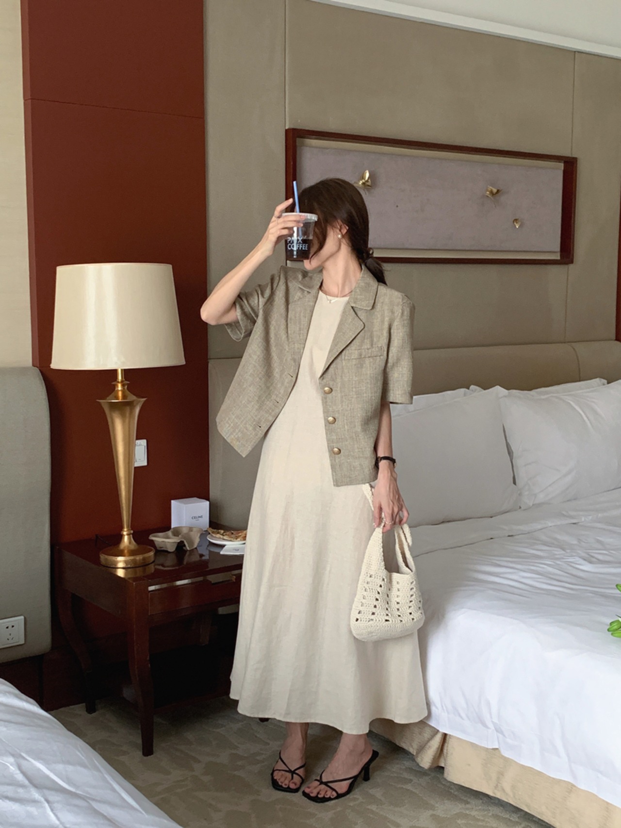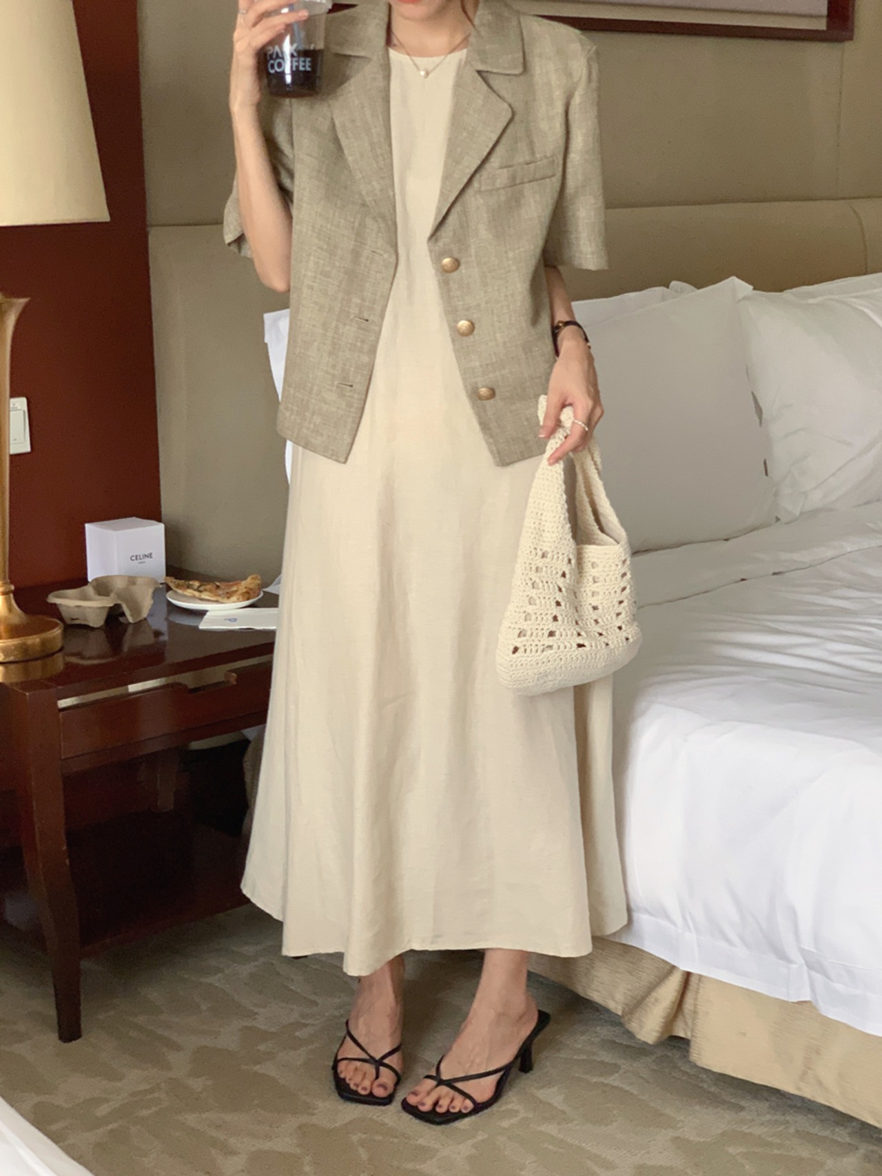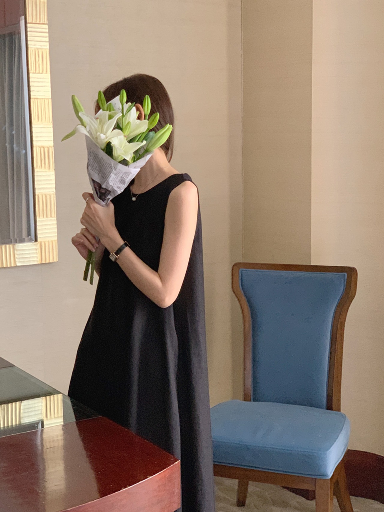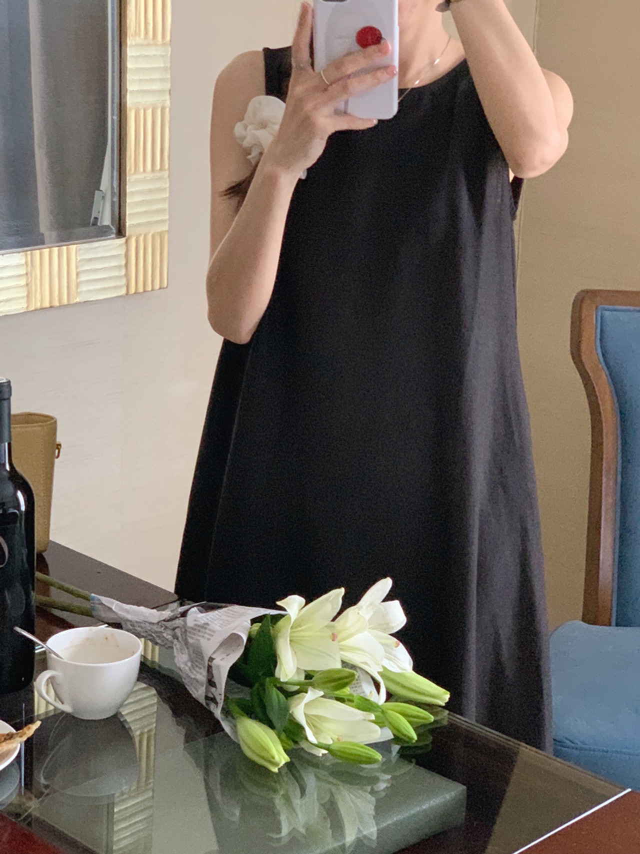 ロングワンピース シック 夏 シンプル ラウンドネック ボタン韓国ファッション バックレス ノースリーブベスト ドレスロングスカート レディース カジュアル 大人 可愛い