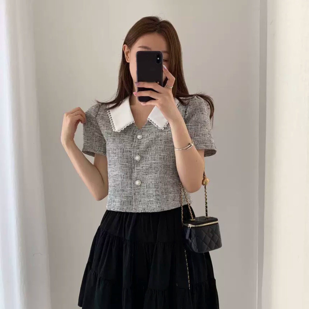 セットアップ レディース 韓国ファッション 大人カジュアル 大人可愛い 可愛い シンプル エレガント ミニスカート ハイウエスト 襟付き