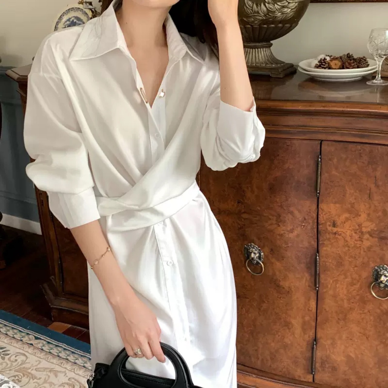 大人カジュアルでおしゃれなシャツワンピース。