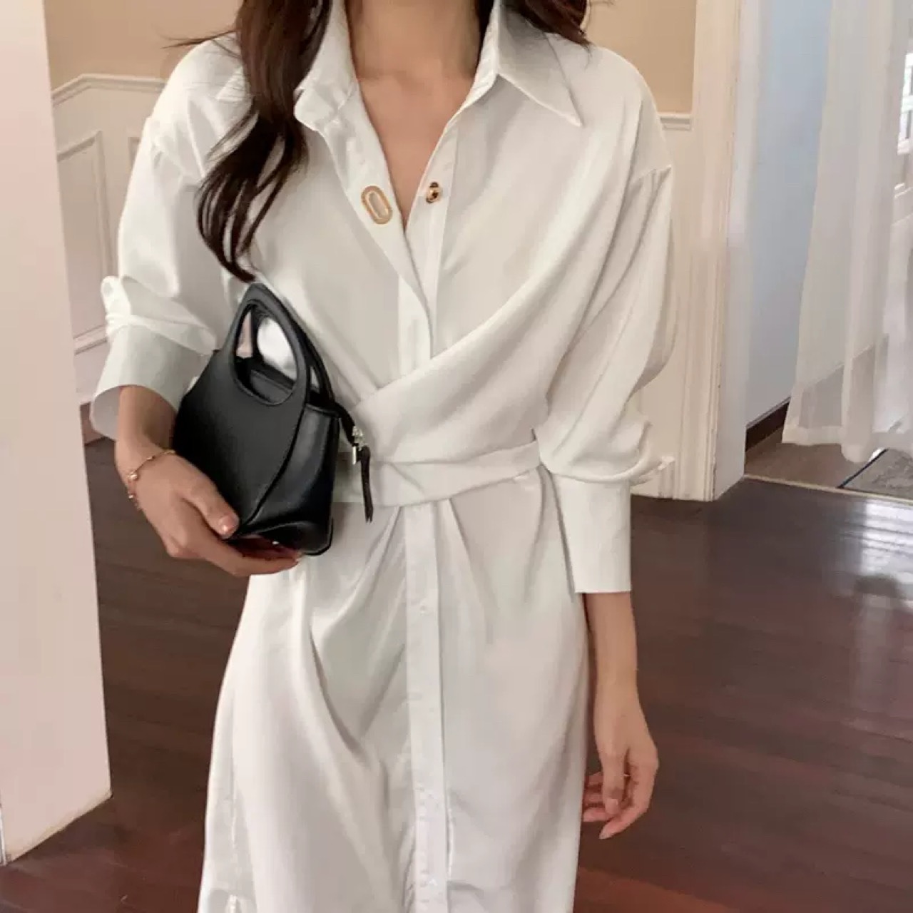 ワンピース シャツワンピース レディース 韓国ファッション 韓国風 大人可愛い 大人カジュアル カジュアル 大人っぽい 夏ファッション 夏コーデ