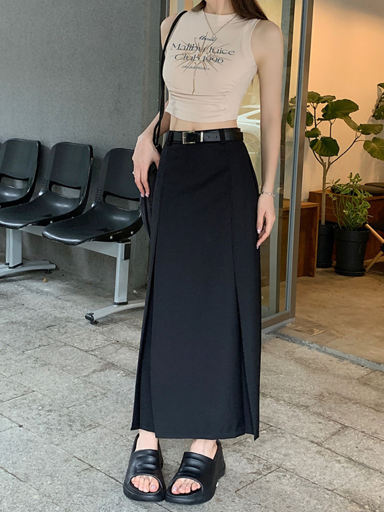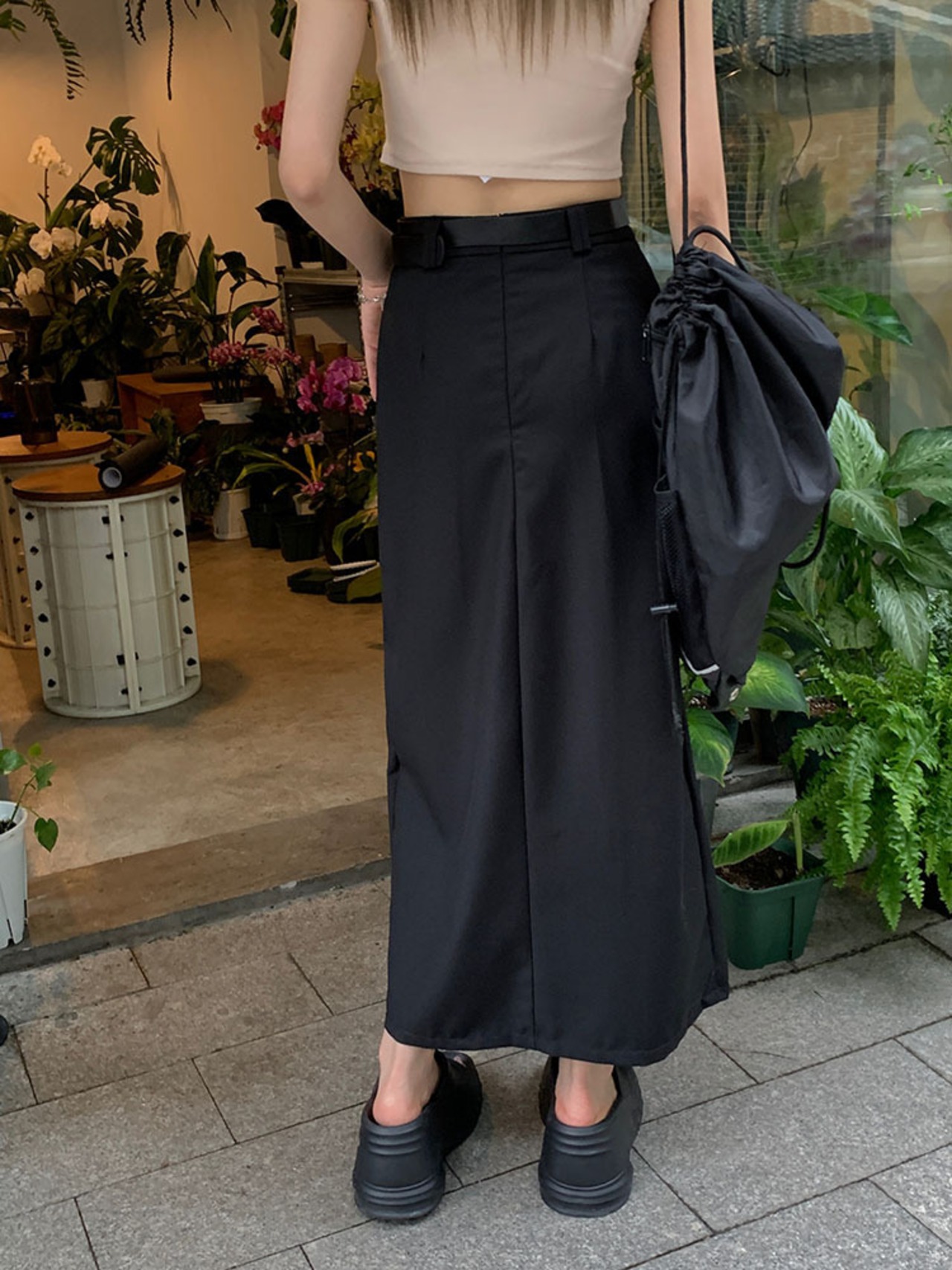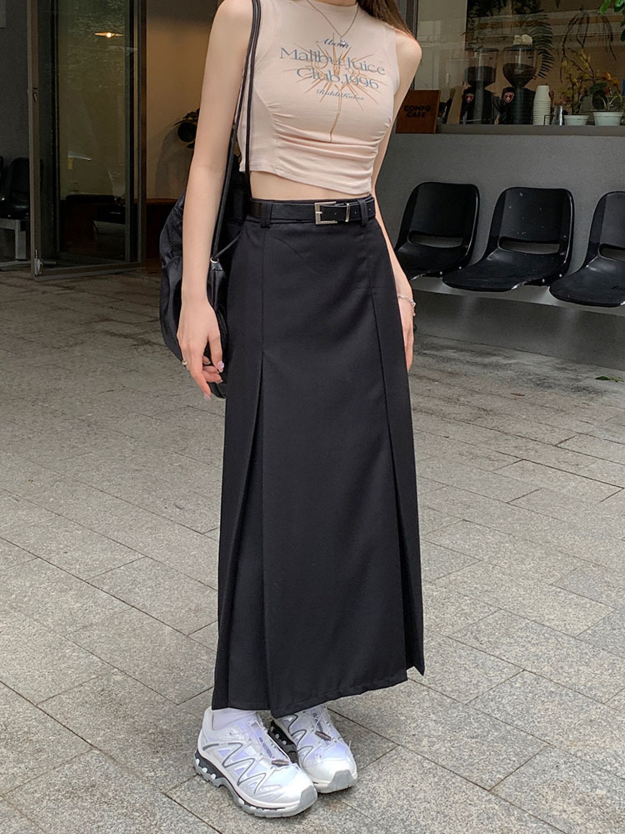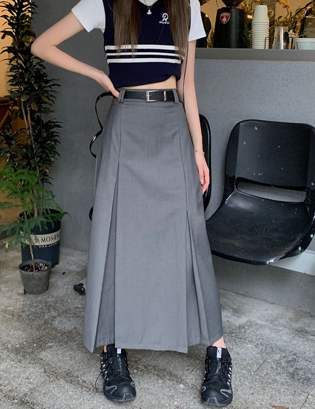 【ベルト付き】ロングスカート ハイウエスト Aライン ワントーン 無地 シンプル きれいめ 韓国ファッション 2color S-XL