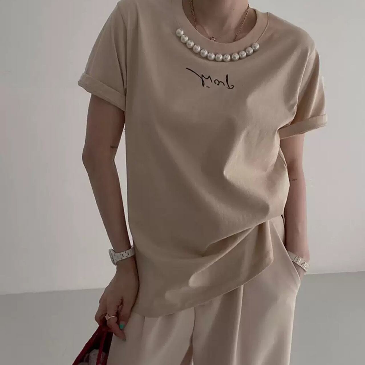 半袖トップス レディース 韓国ファッション 大人可愛い 大人カジュアル カジュアル 大人っぽい パール エレガント 夏コーデ 夏ファッション 大人っぽい