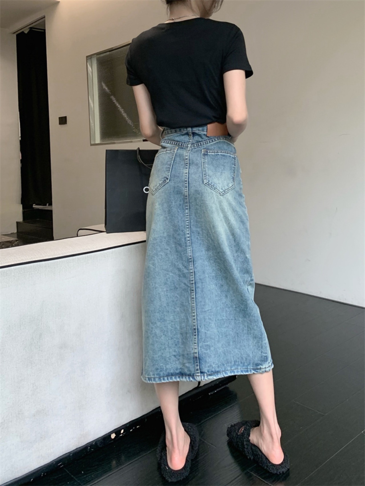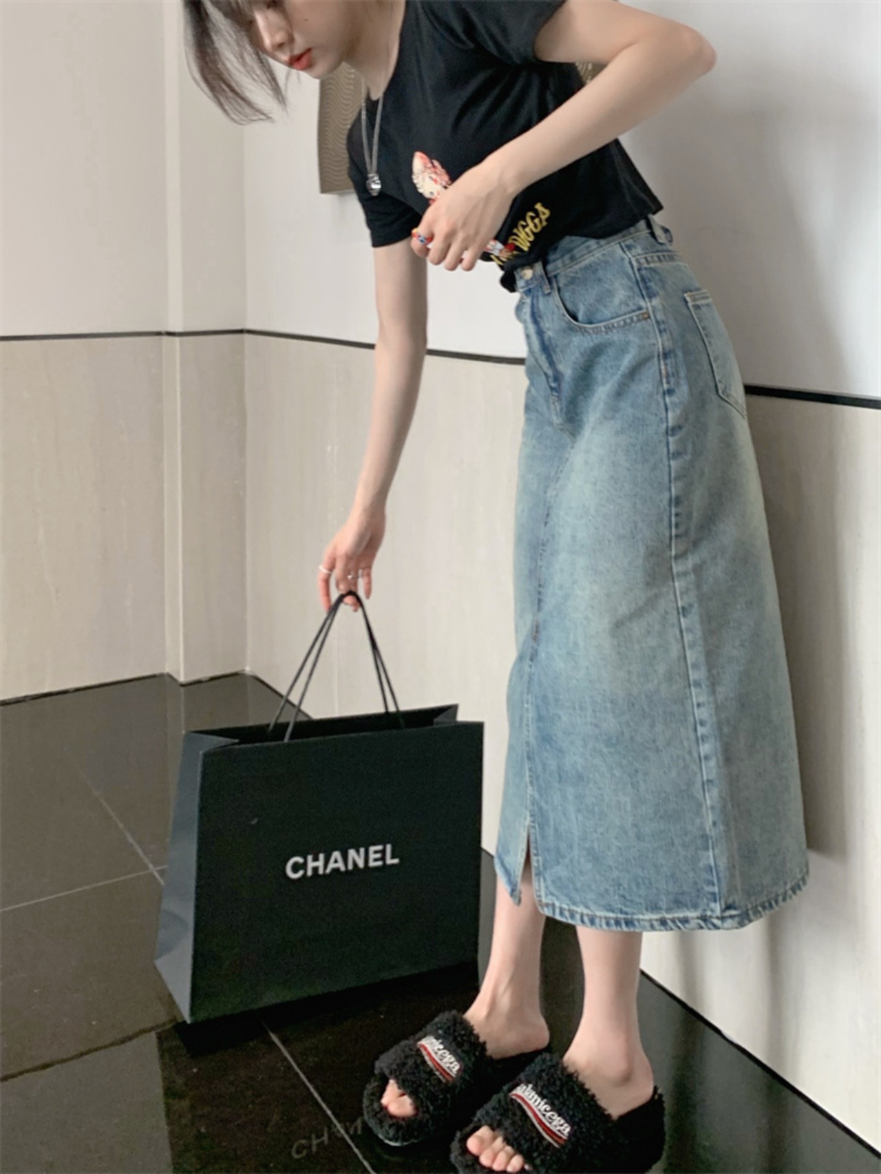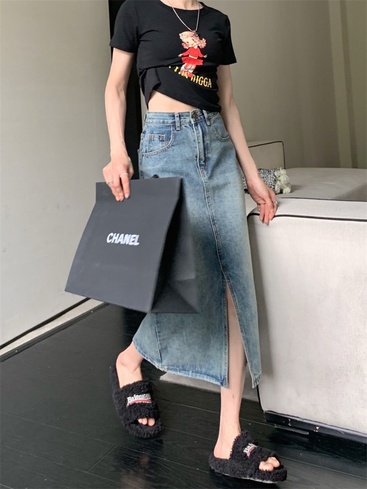 ロングスカート デニムスカート スリット ボトム 着回し カジュアル トレンド 韓国ファッション XS-XL