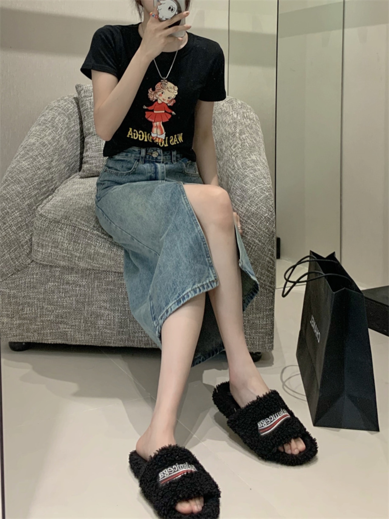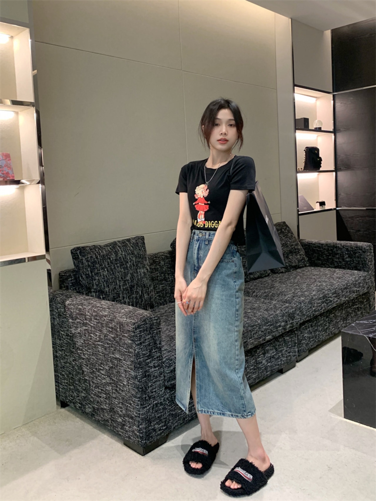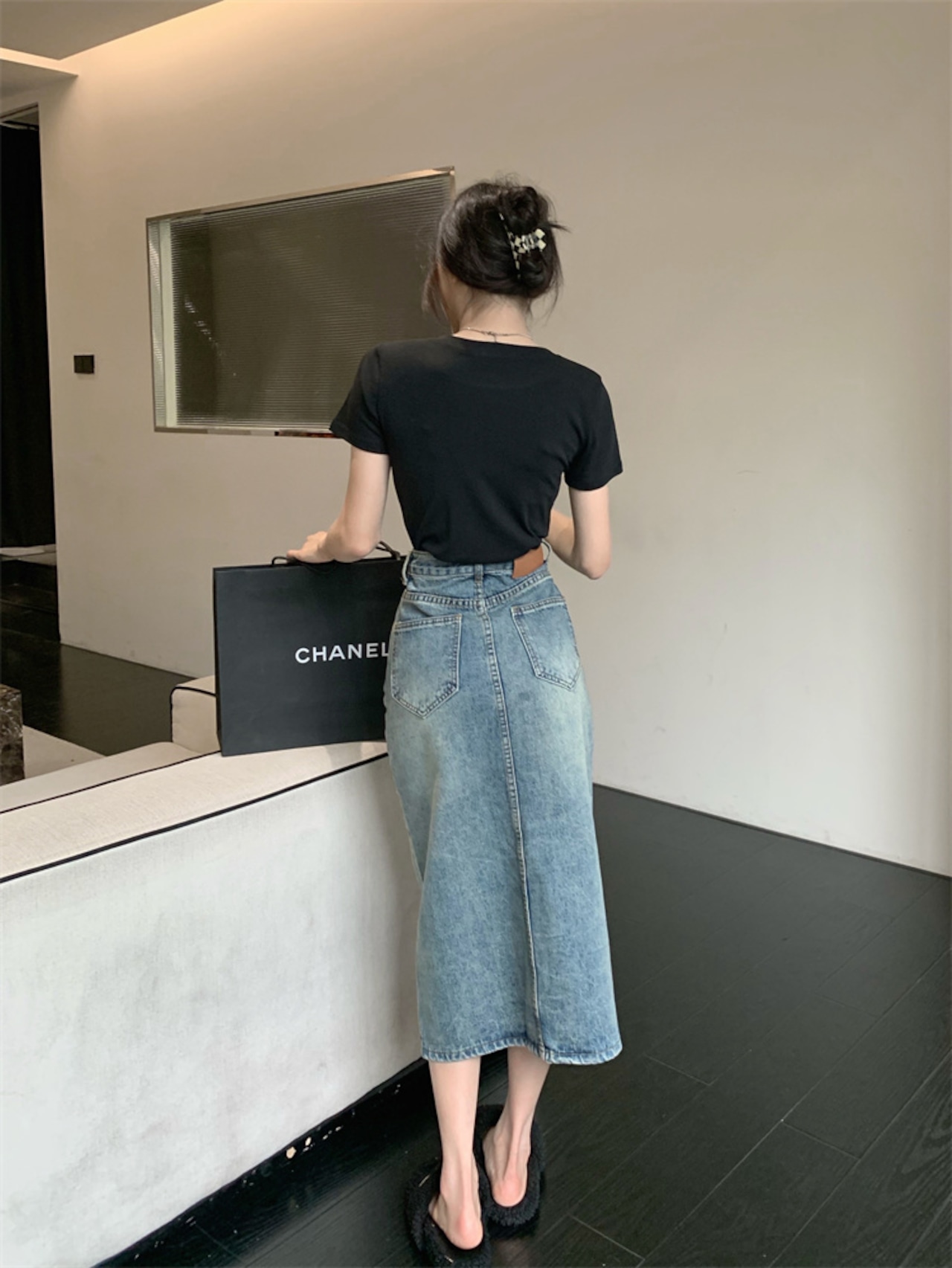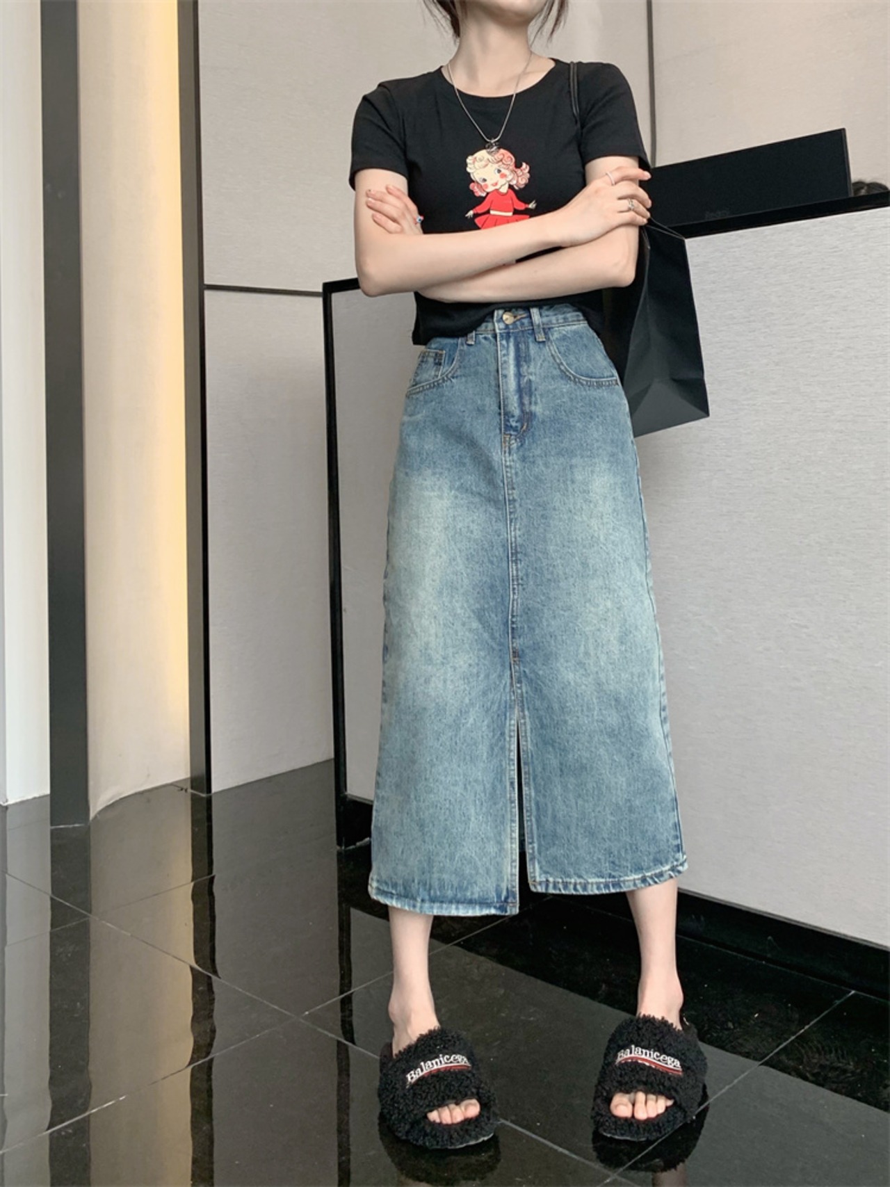 ロングスカート デニムスカート スリット ボトム 着回し カジュアル トレンド 韓国ファッション XS-XL