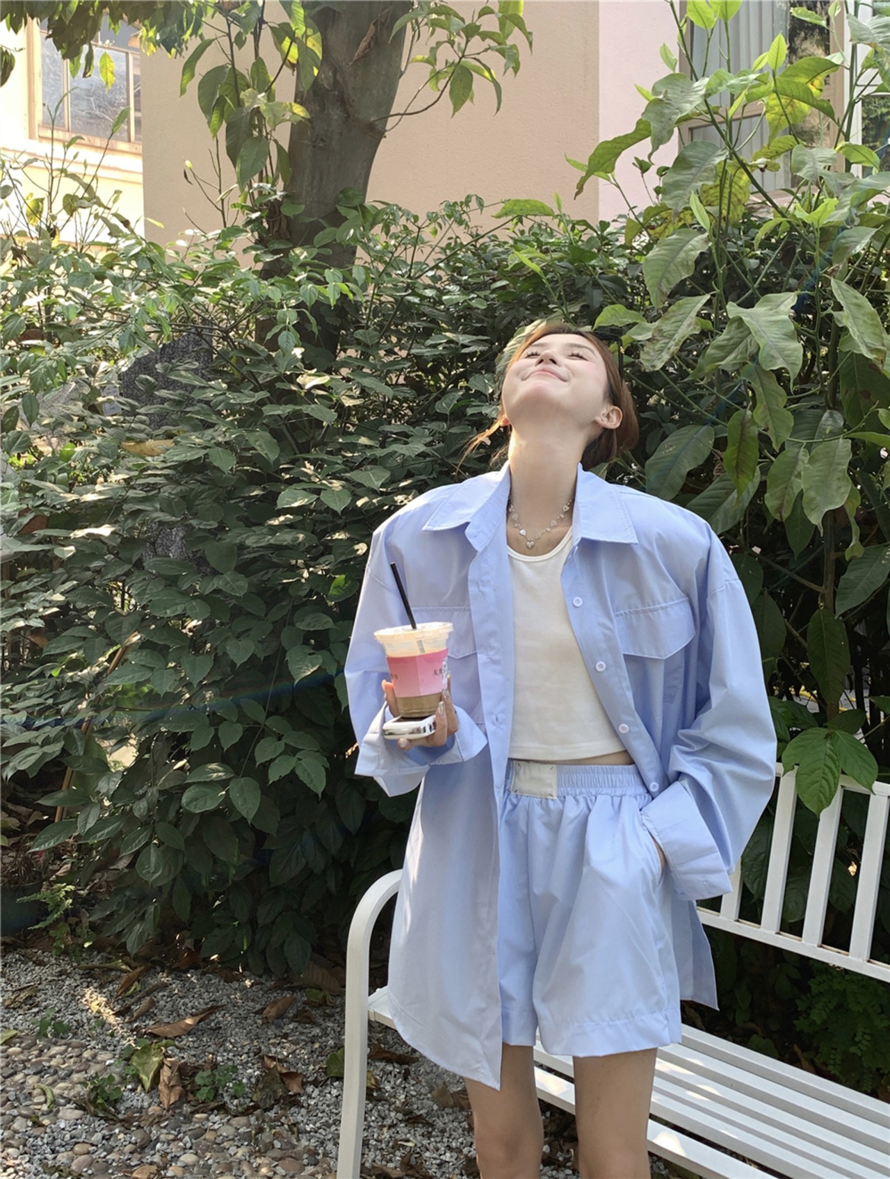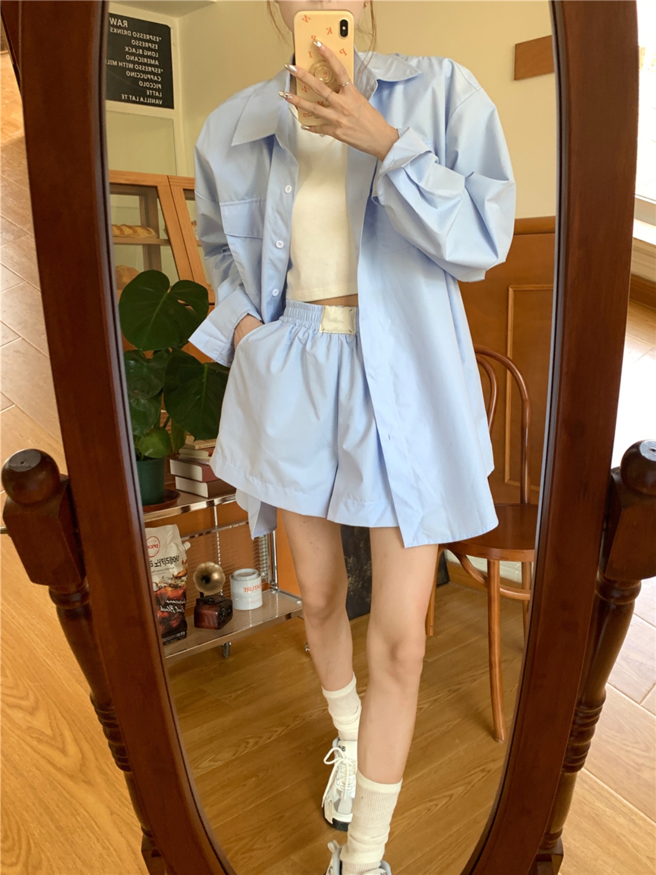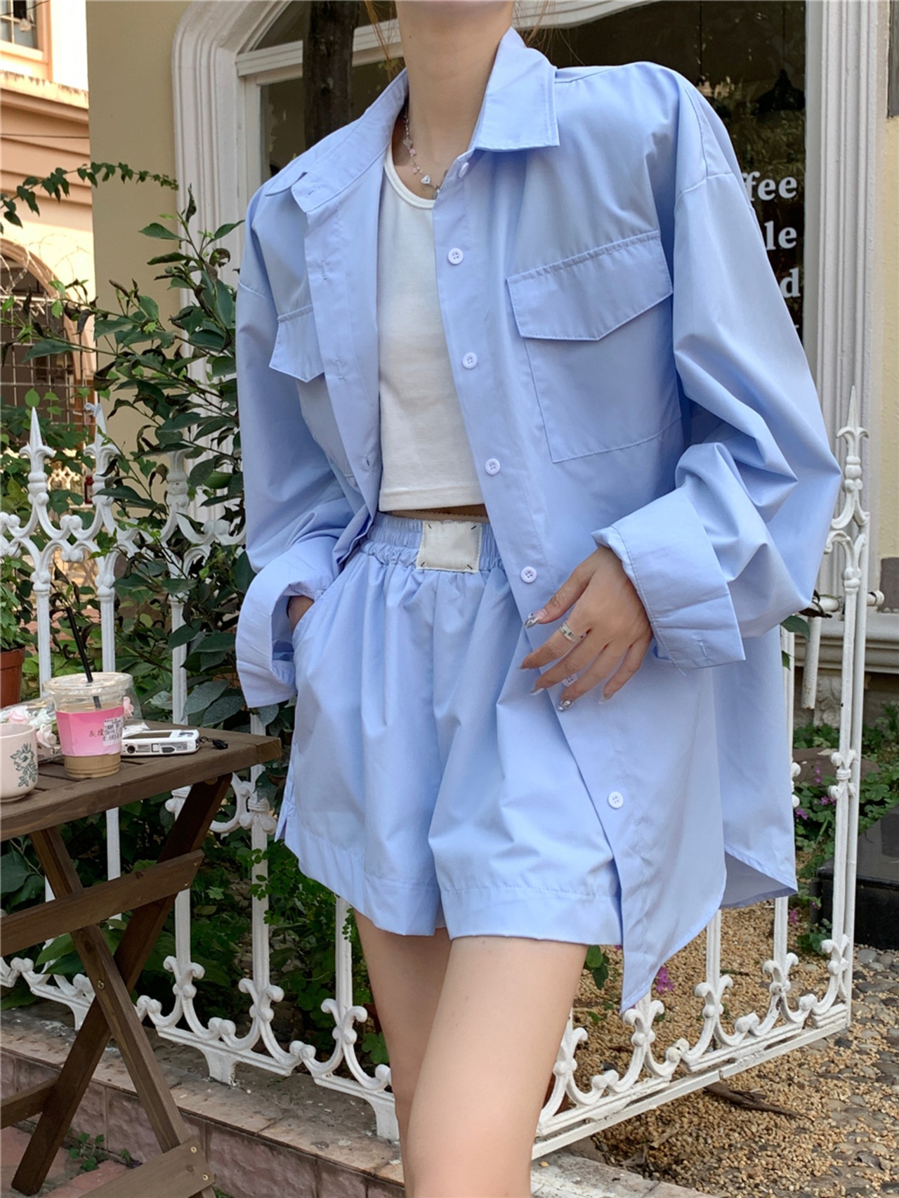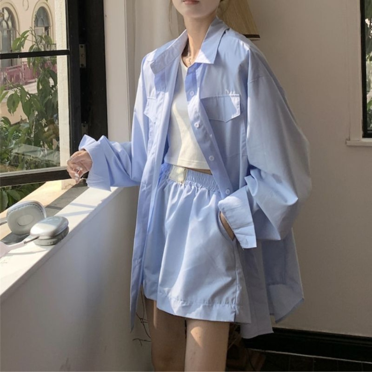 セットアップ ツーピース 上下セット トップス ブラウス シャツ ショートパンツ ボトム カジュアルパンツ カジュアル レトロ 韓国ファッション S-XL