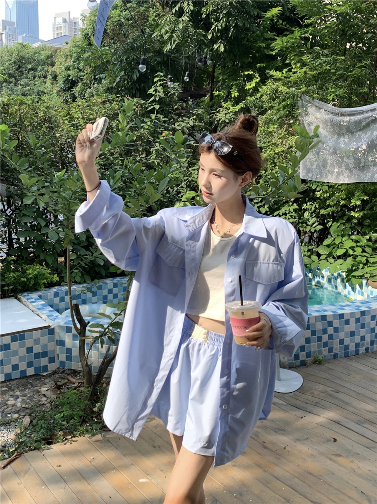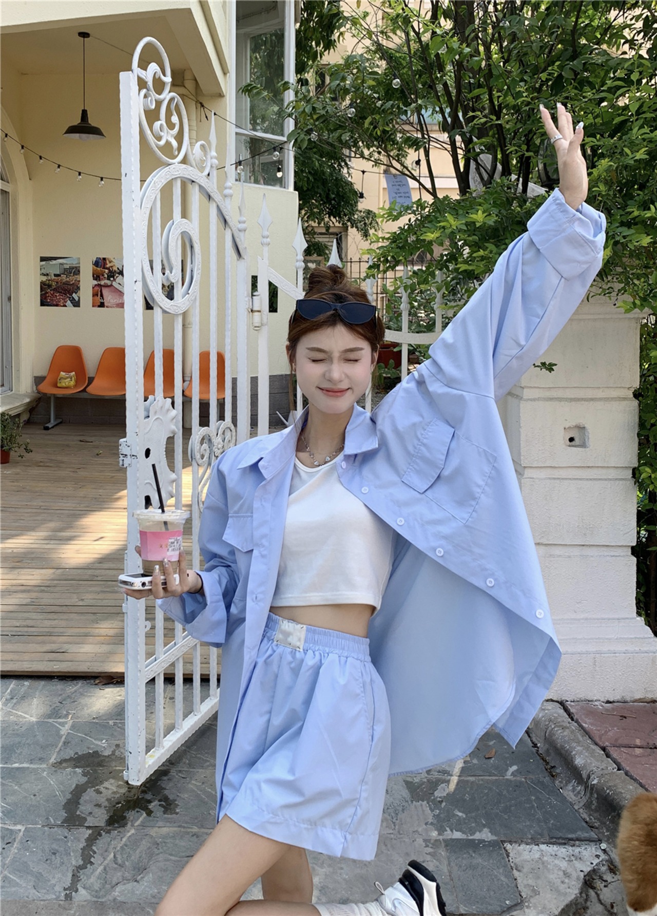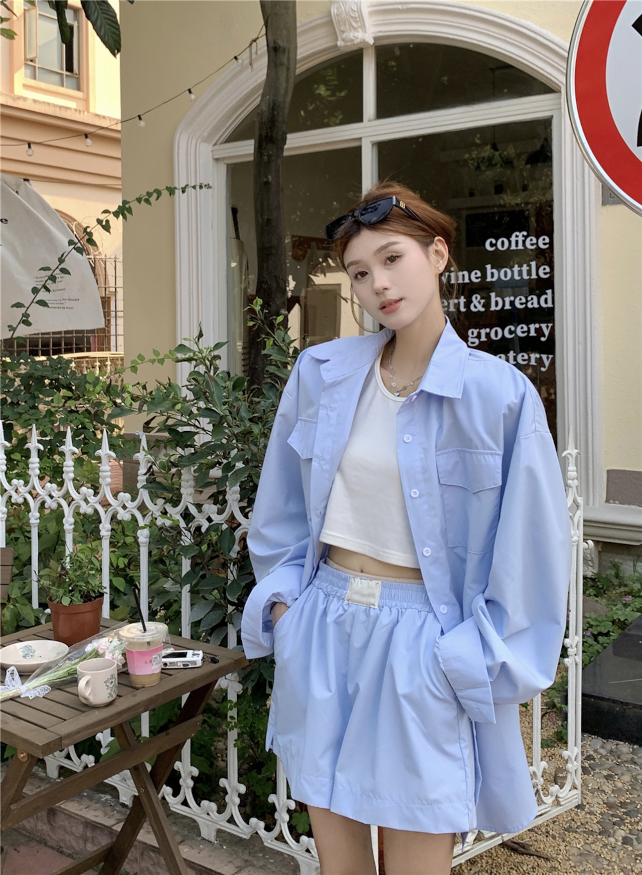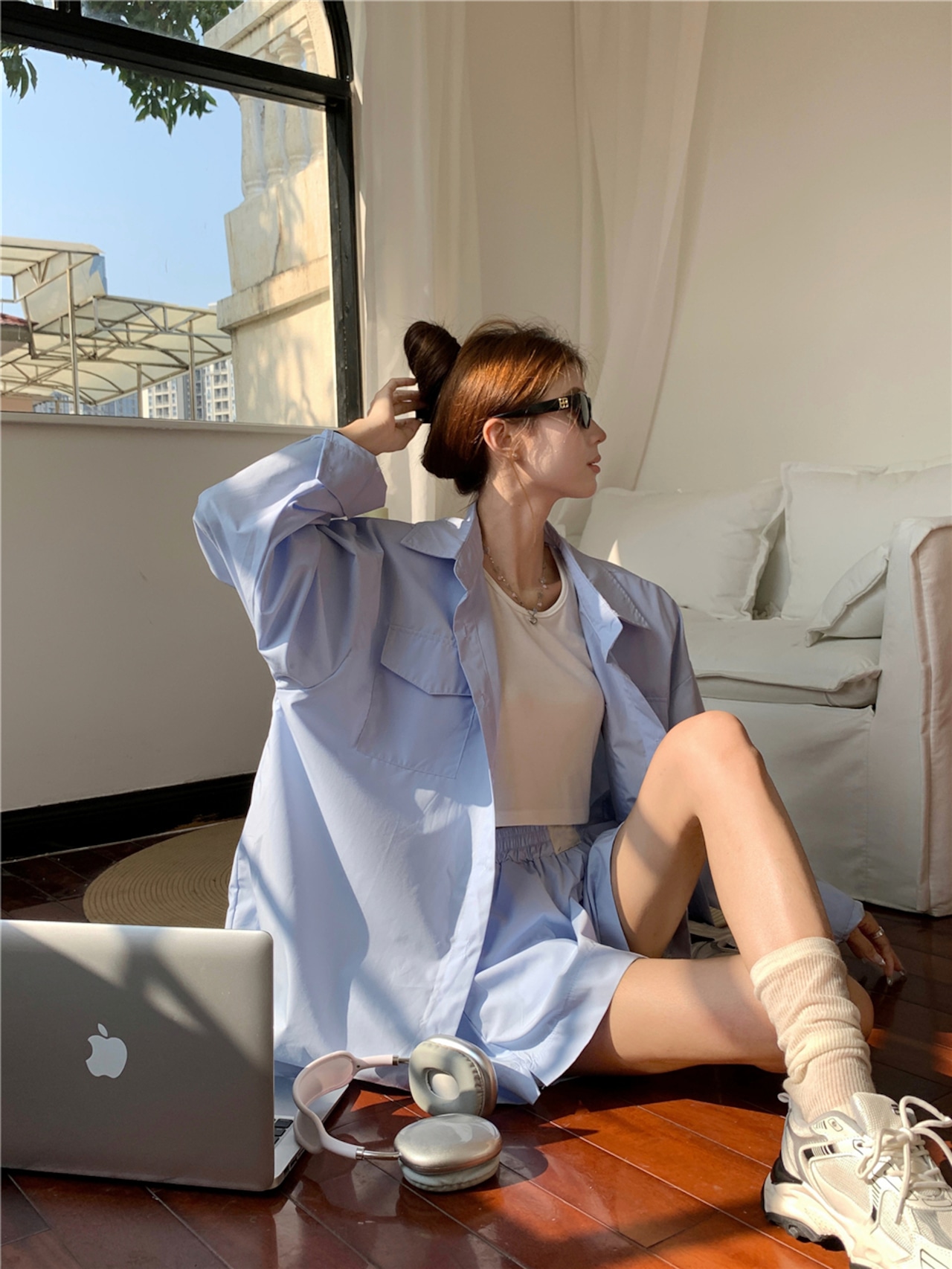 セットアップ ツーピース 上下セット トップス ブラウス シャツ ショートパンツ ボトム カジュアルパンツ カジュアル レトロ 韓国ファッション S-XL