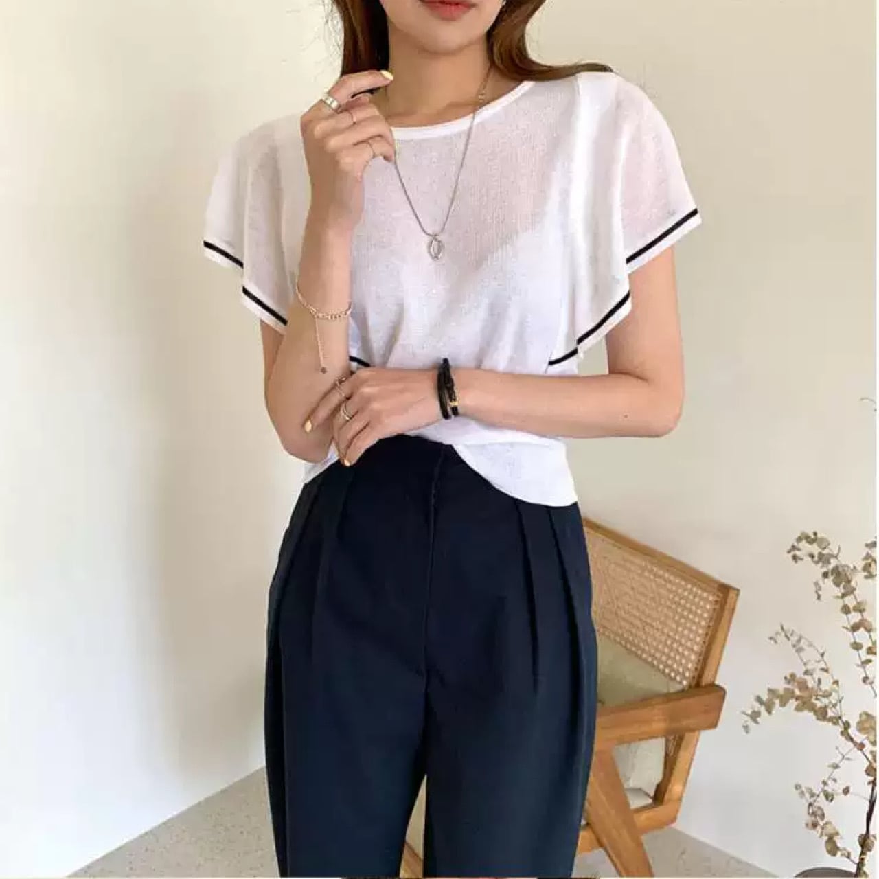 スカートにもデニムパンツにも合わせやすい〇