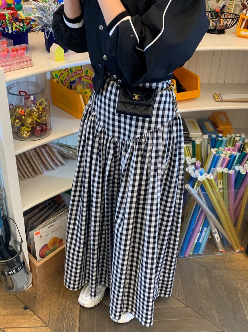 スカート ロングスカート シック 夏 レトロ オールマッチハイウエスト チェック柄 韓国ファッション 痩身デザインセンス ニッチ レディース シンプル きれいめ