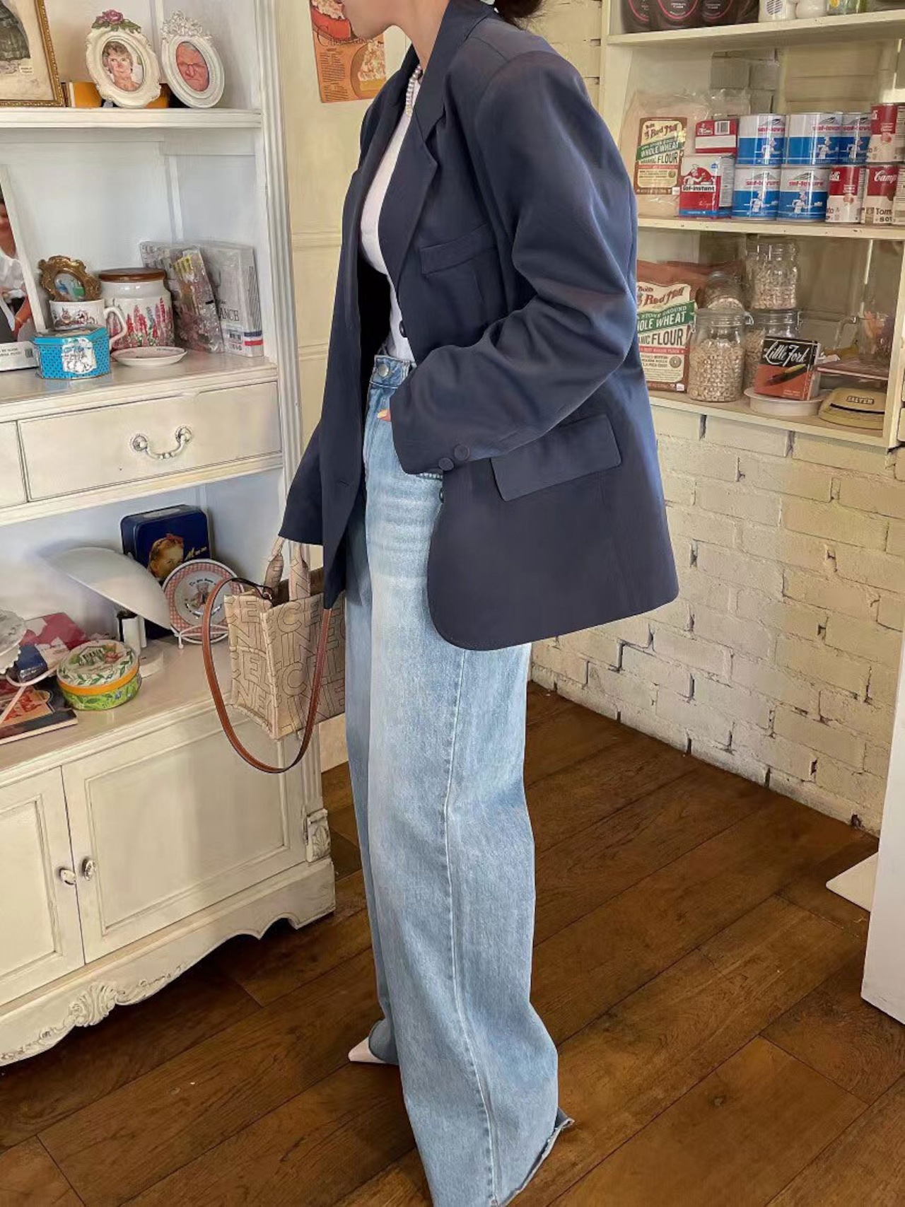 デニムパンツ ジーンズ シック フレンチレトロハイウエスト薄い愛プリント デザイン ワイドレッグウォッシュジーンズ カジュアル 韓国ファッション S-XL
