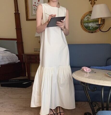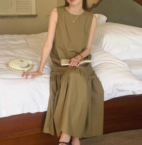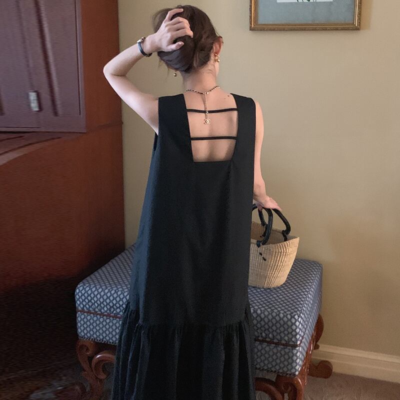 ノースリーブドレス レトロヘボンスタイル エッジスカート ベストスカート レディース 韓国ファッション
