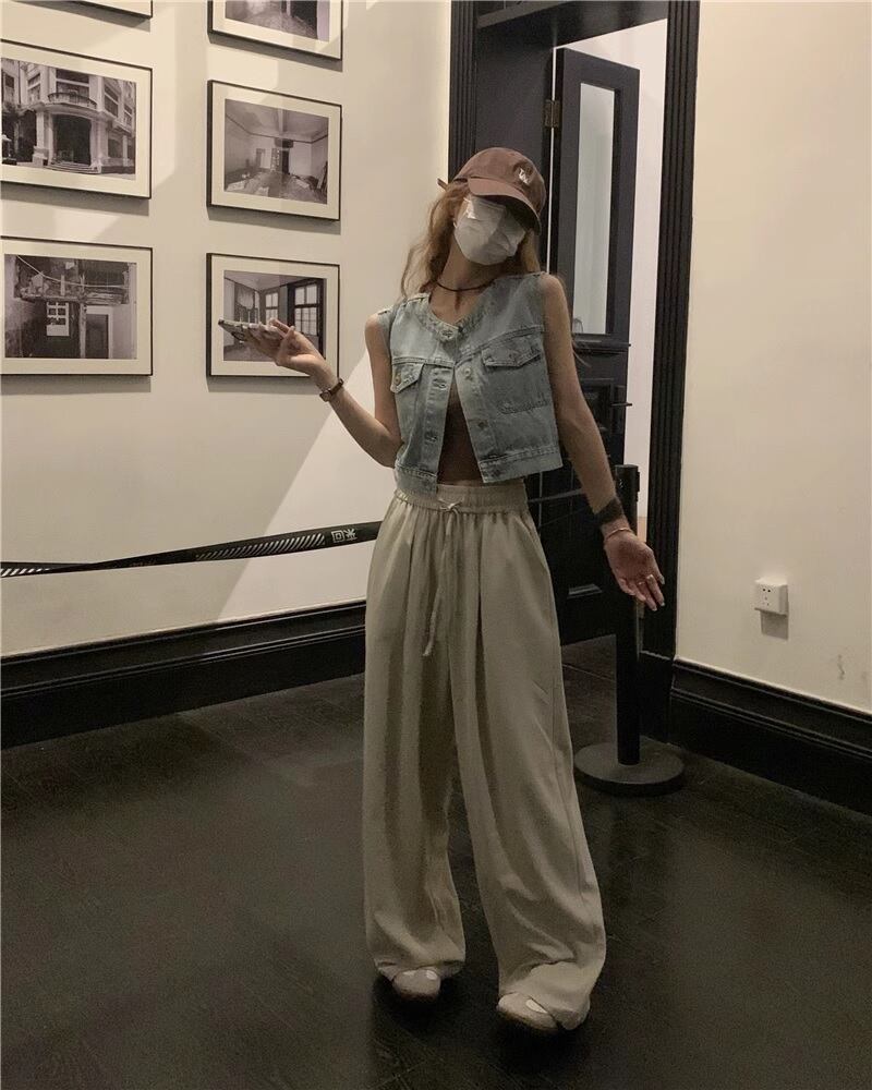 デニムベストセットアップ ツーピース 上下セット ベスト ボトム パンツ カジュアル レトロ 韓国ファッション