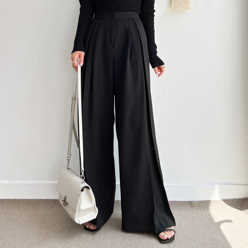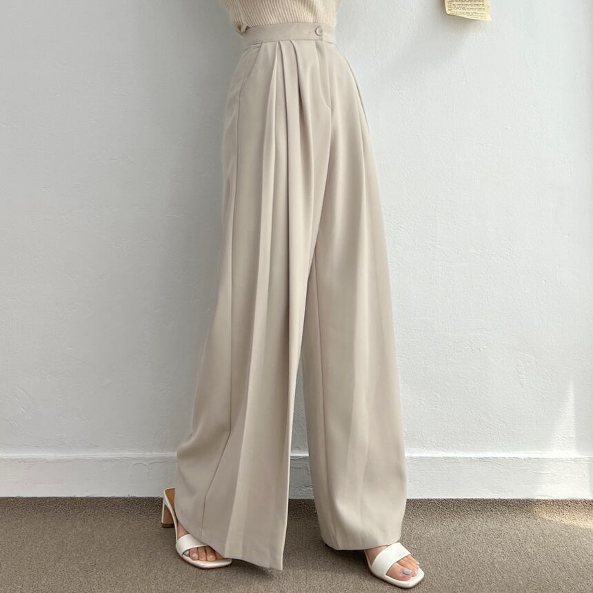 カジュアルパンツ シック ミニマリスト ハイウエストオールマッチプリーツ デザイン ドレープ フロアモップ ワイドレッグ レディース 韓国ファッション カジュアル 大人 きれいめ
