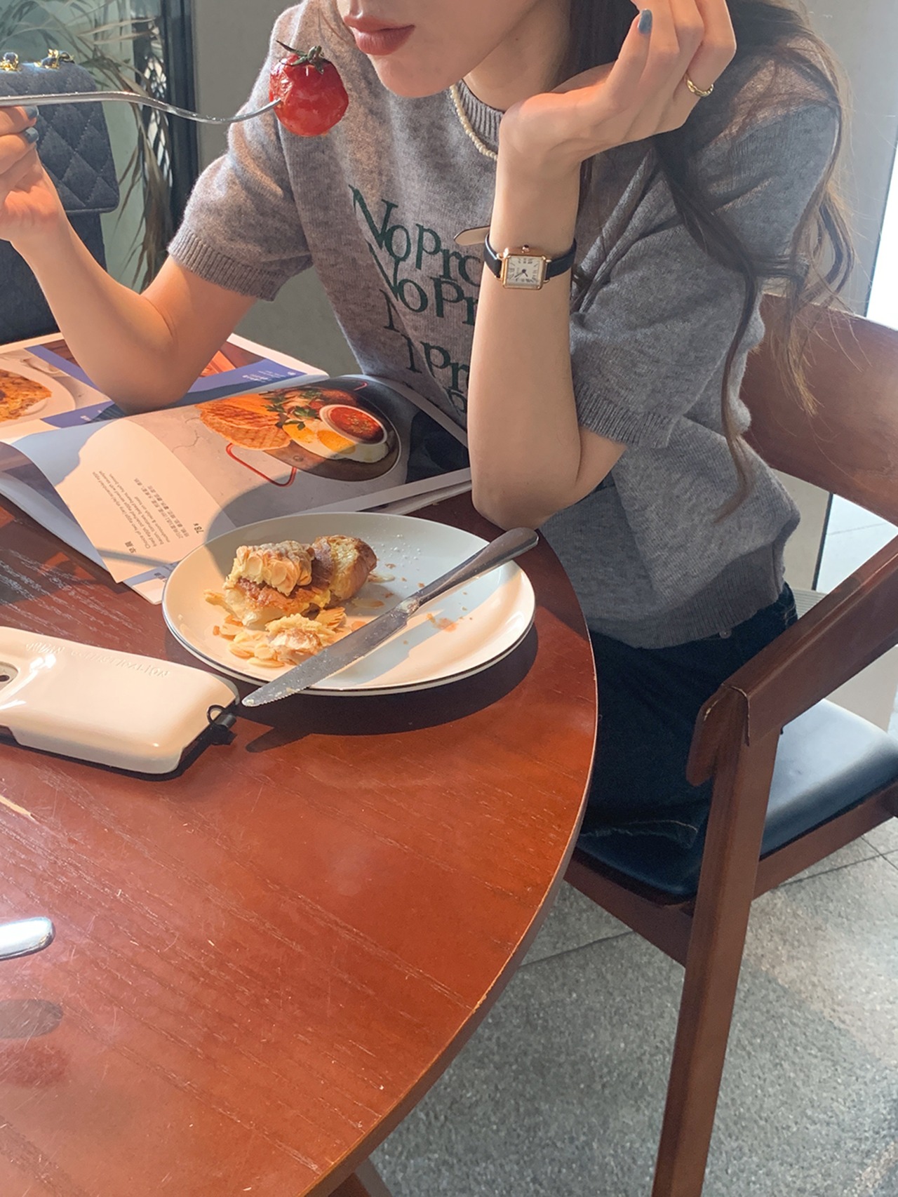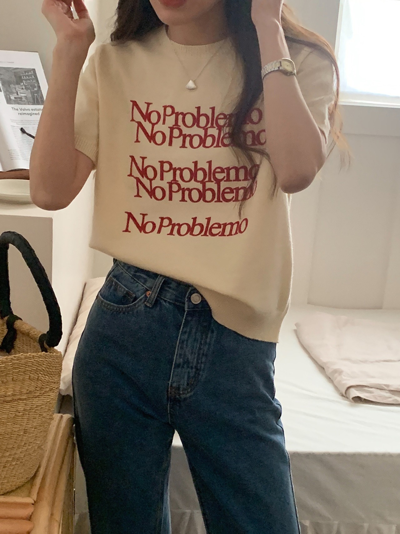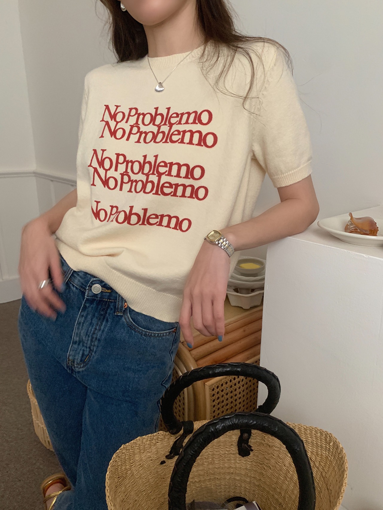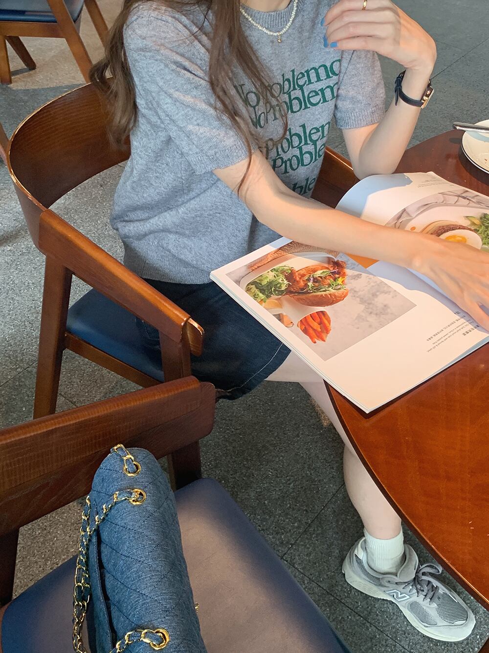 半袖 プルオーバーセーター シック ラウンドネックカラー コントラスト文字 ジャカードデザイン レディース 韓国ファッション カジュアル 大人 きれいめ
