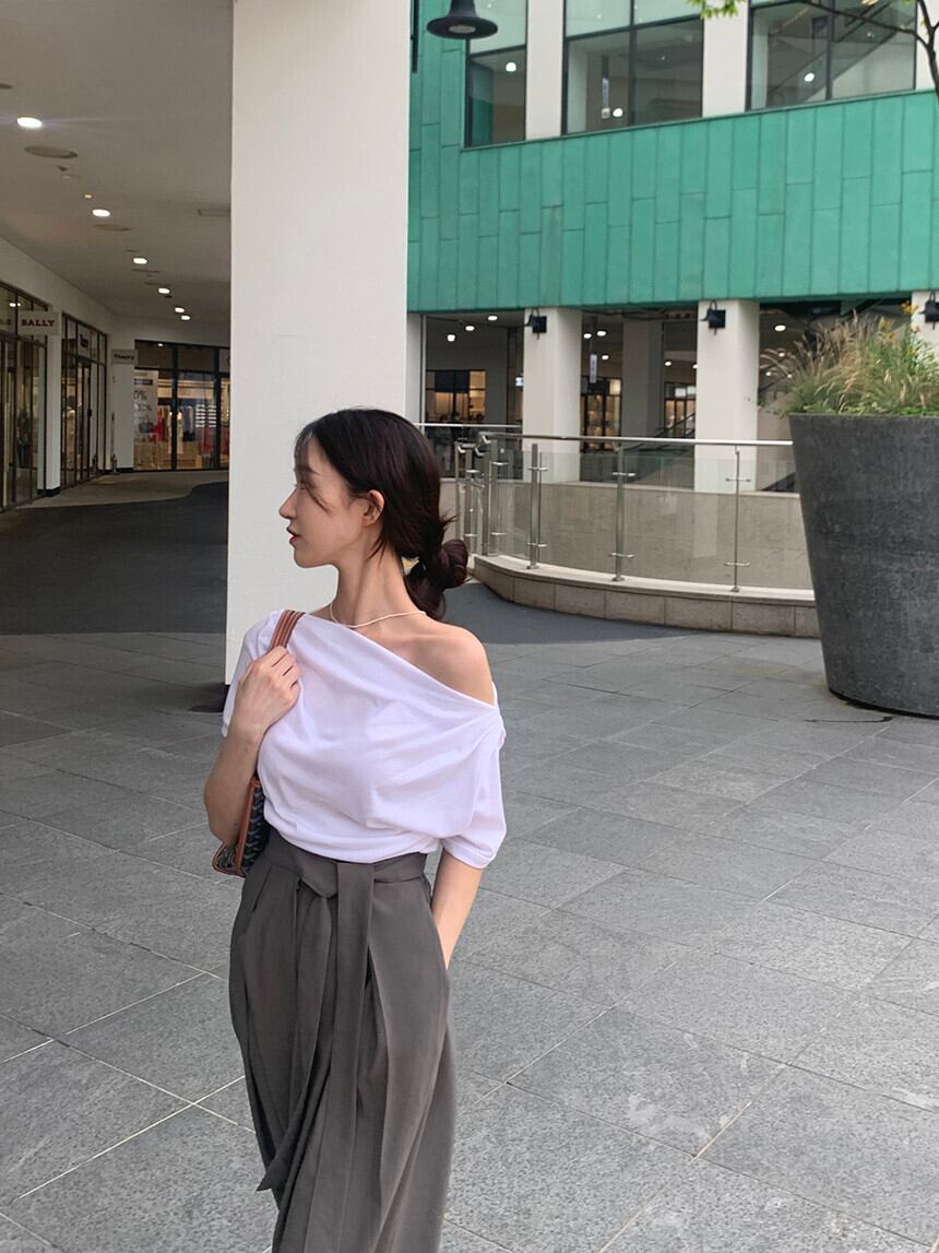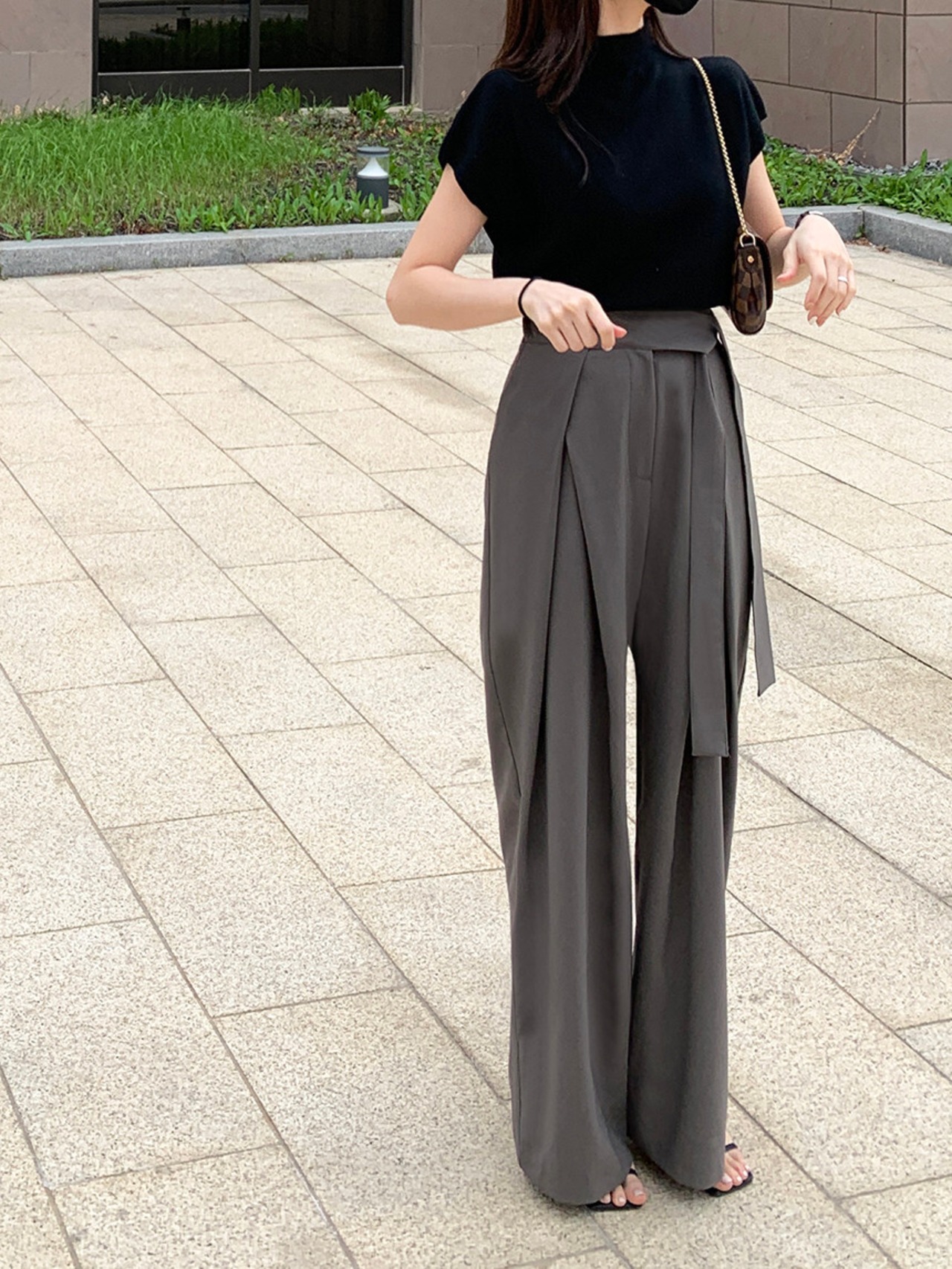カジュアルパンツ ニッチ シンプル ハイウエスト レースアップ ドレープス トレートルーズ ワイドレッグ レディース 大人カジュアル 可愛い 韓国ファッション