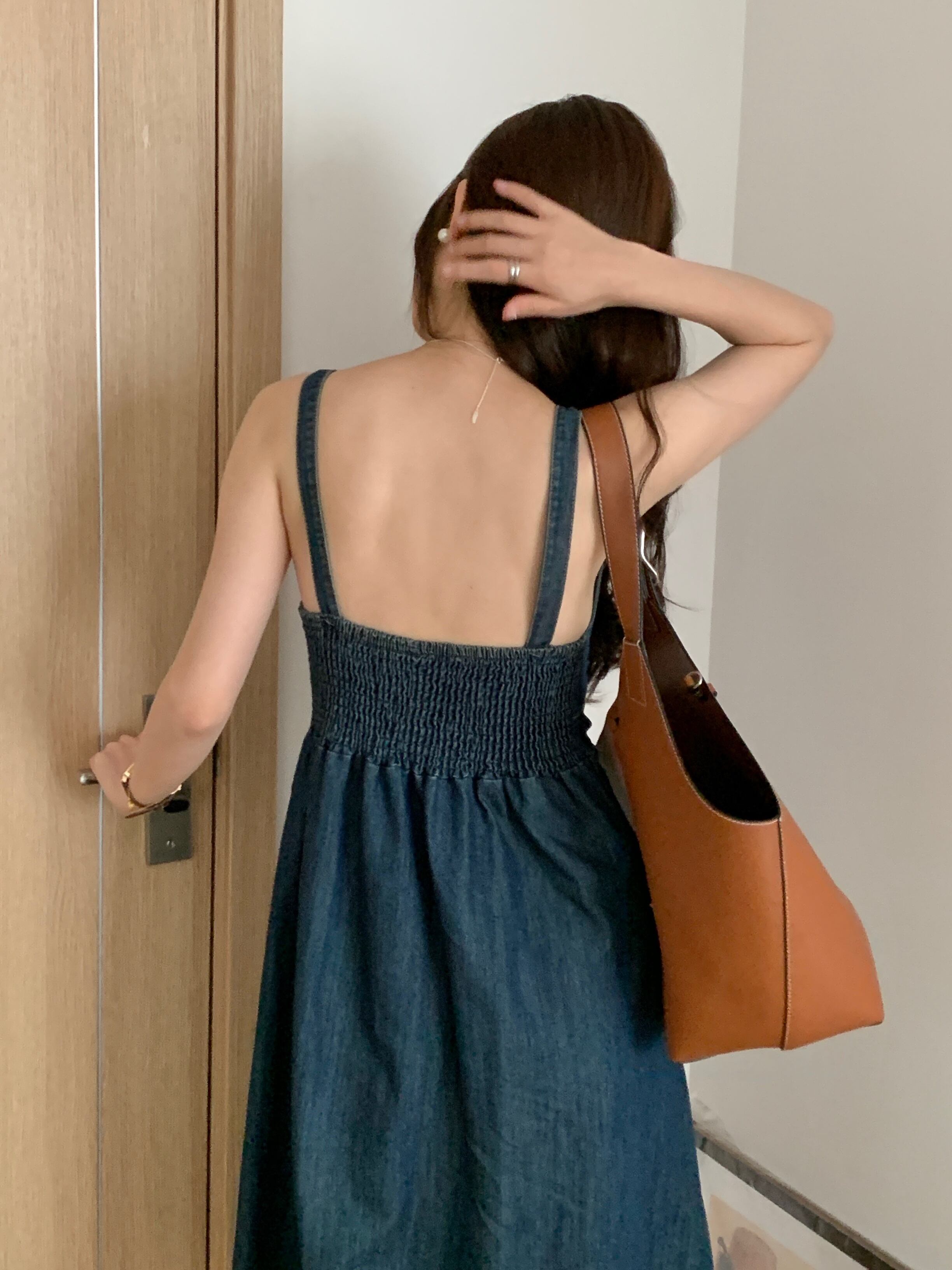デニム ワンピース シック 夏 レトロ スクエアカラー オープンライン デザイン ハイウエスト スリムノースリーブ ストラップドレス レディース 大人カジュアル 可愛い 韓国ファッション