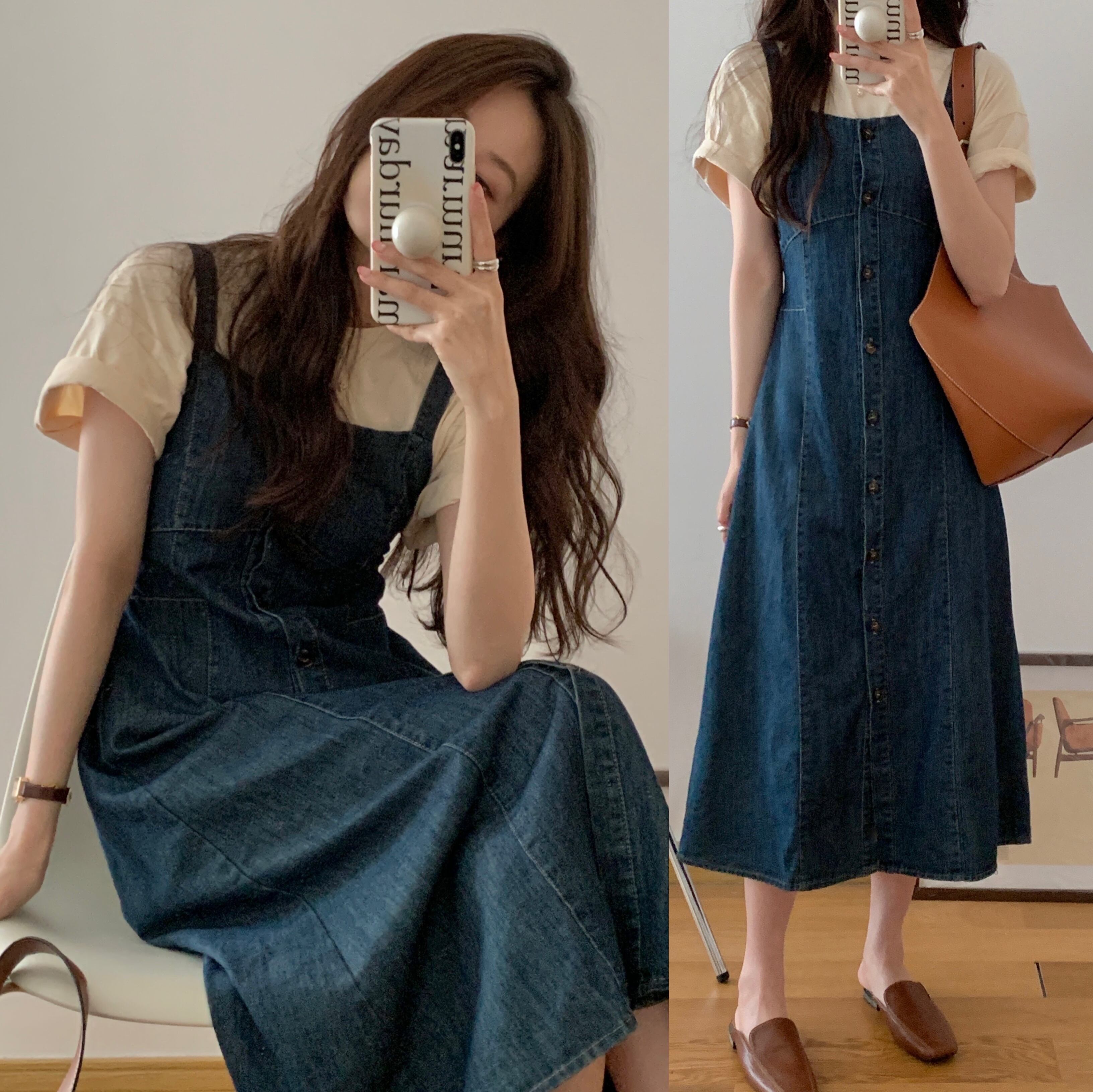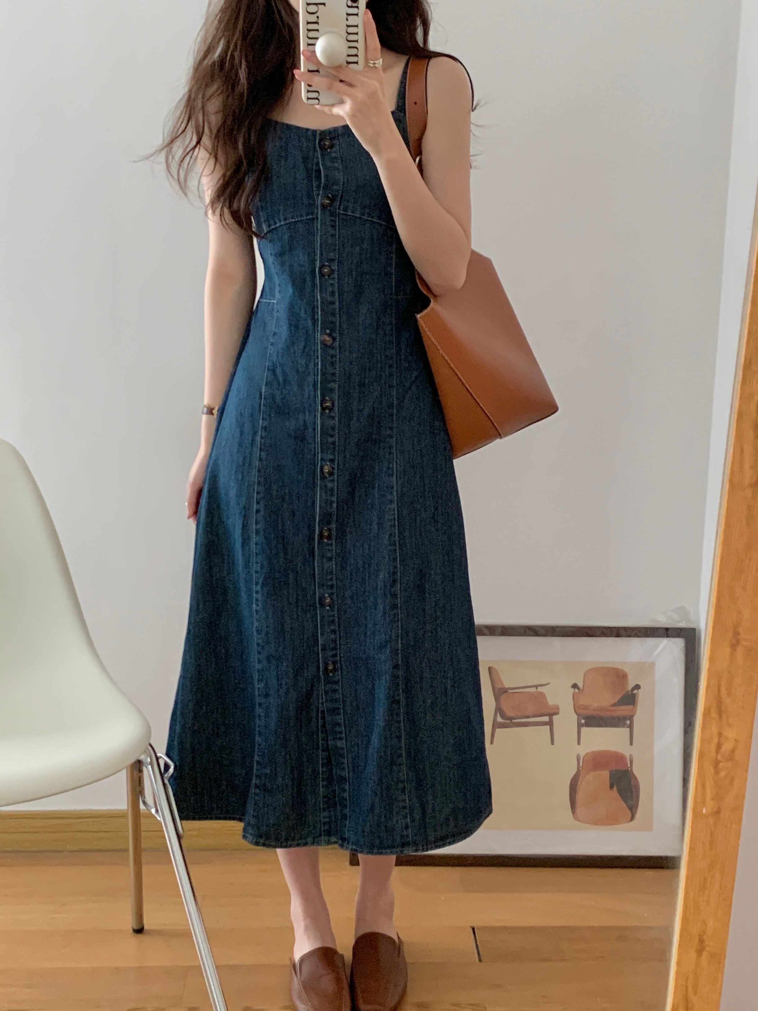 カジュアルで可愛いデニムワンピース