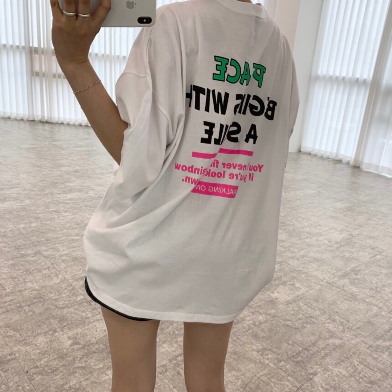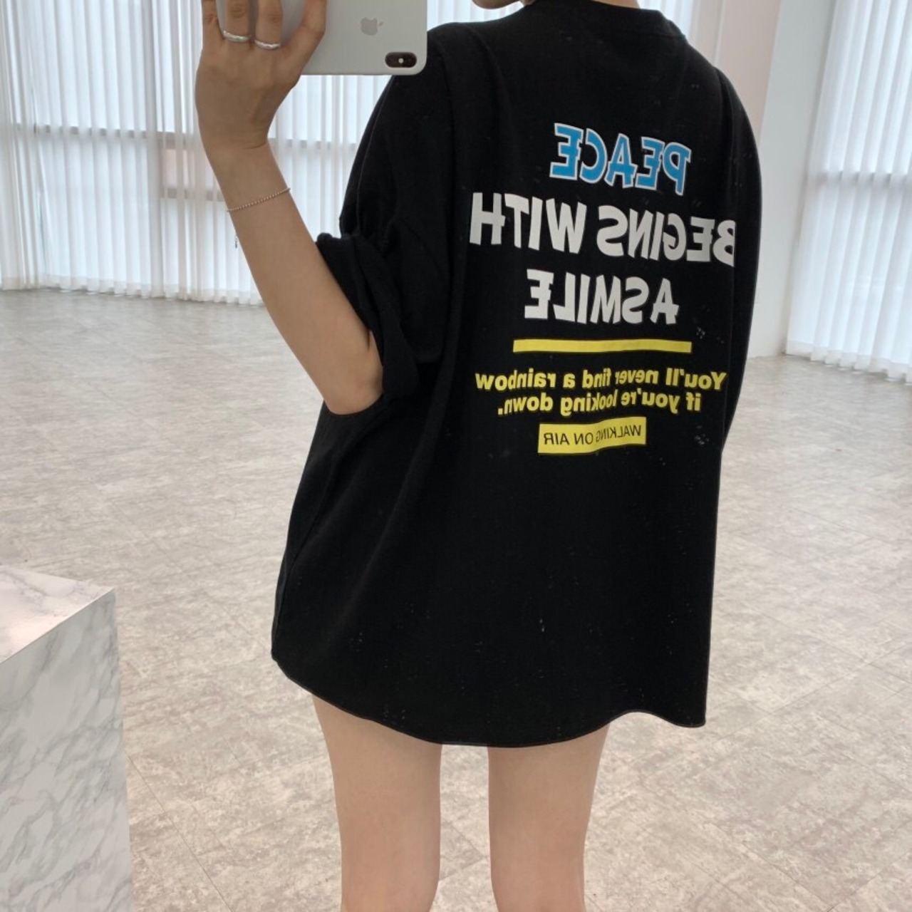 半袖 Tシャツ トップ シンプル オールマッチ ラウンドネックバック レタープリントルーズ カジュアル レディース 大人カジュアル 可愛い 韓国ファッション